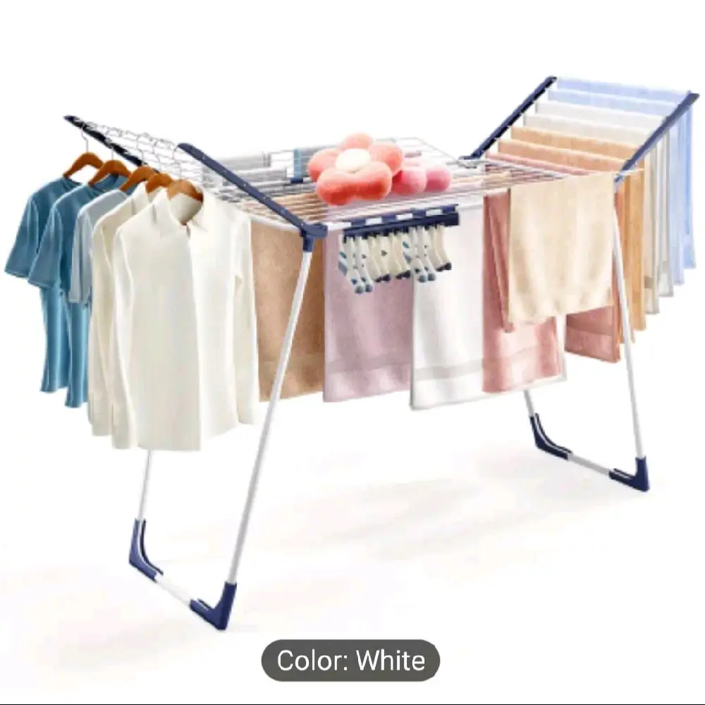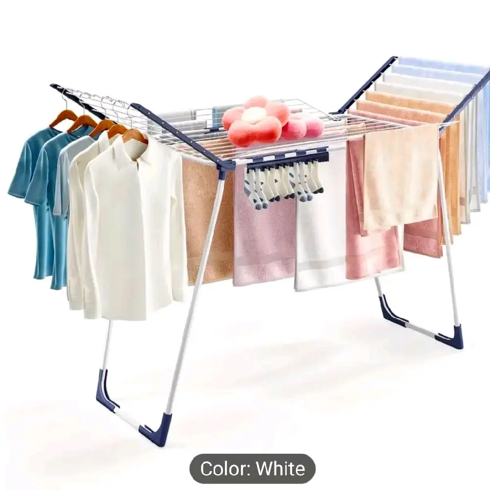 TOOLF Foldable Clothes Drying Rack, Winged Laundry Rack With Adjustable Arms And Sock Clips, Large Space For Towels Bedding Dresses, Indoor & Outdoor Use