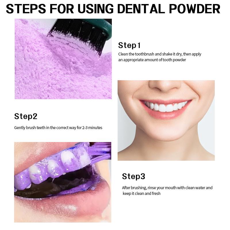 There’s no Instructions that tells you how much to apply and how many days to used so I just used after I drink anything that goes stain my veneers I don’t really see any improvement has my teeth’s are white I used strips to whiten my veneers the powder I rarely used but the taste of it is mint