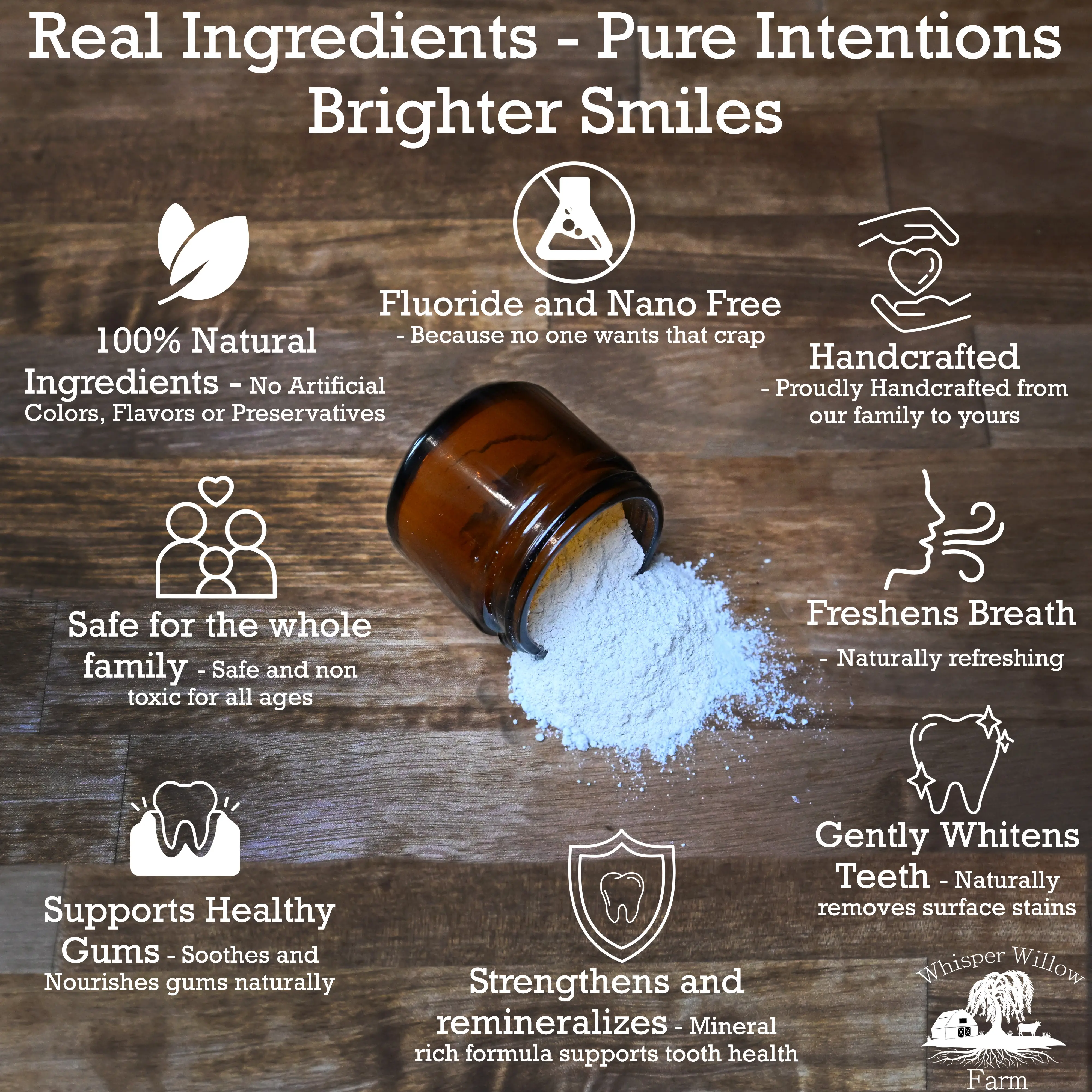 Are you seeking a natural approach to oral care? Our Tooth Powder offers a refreshing clean feel and promotes tooth remineralization. It's crafted with 15% Natural Bovine Derived Microcrystalline Hydroxyapatite, enhancing enamel health. Perfect for those who value natural ingredients, it avoids harsh chemicals. Embrace a conscious perspective on your oral care with our Tooth Powder!
