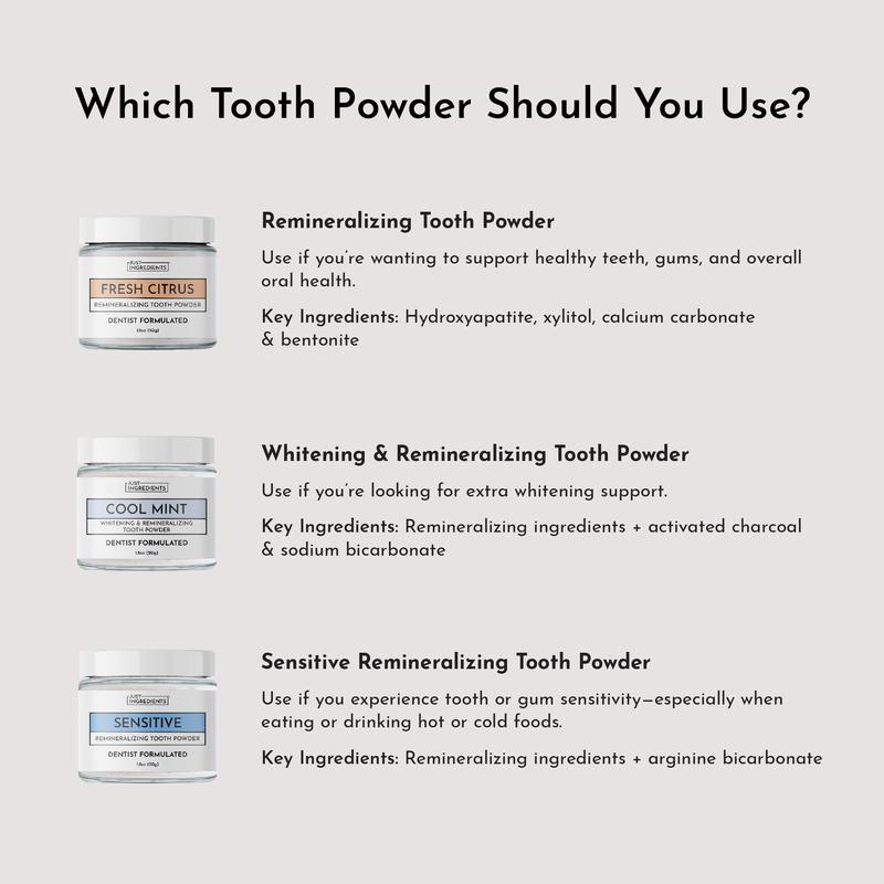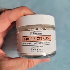 I love the fresh, clean feel of this tooth powder. I tried the cool mint flavor first which was nice, but this one takes the cake for me, and the kids like it too! Pairs perfectly with my silver toothbrush :)