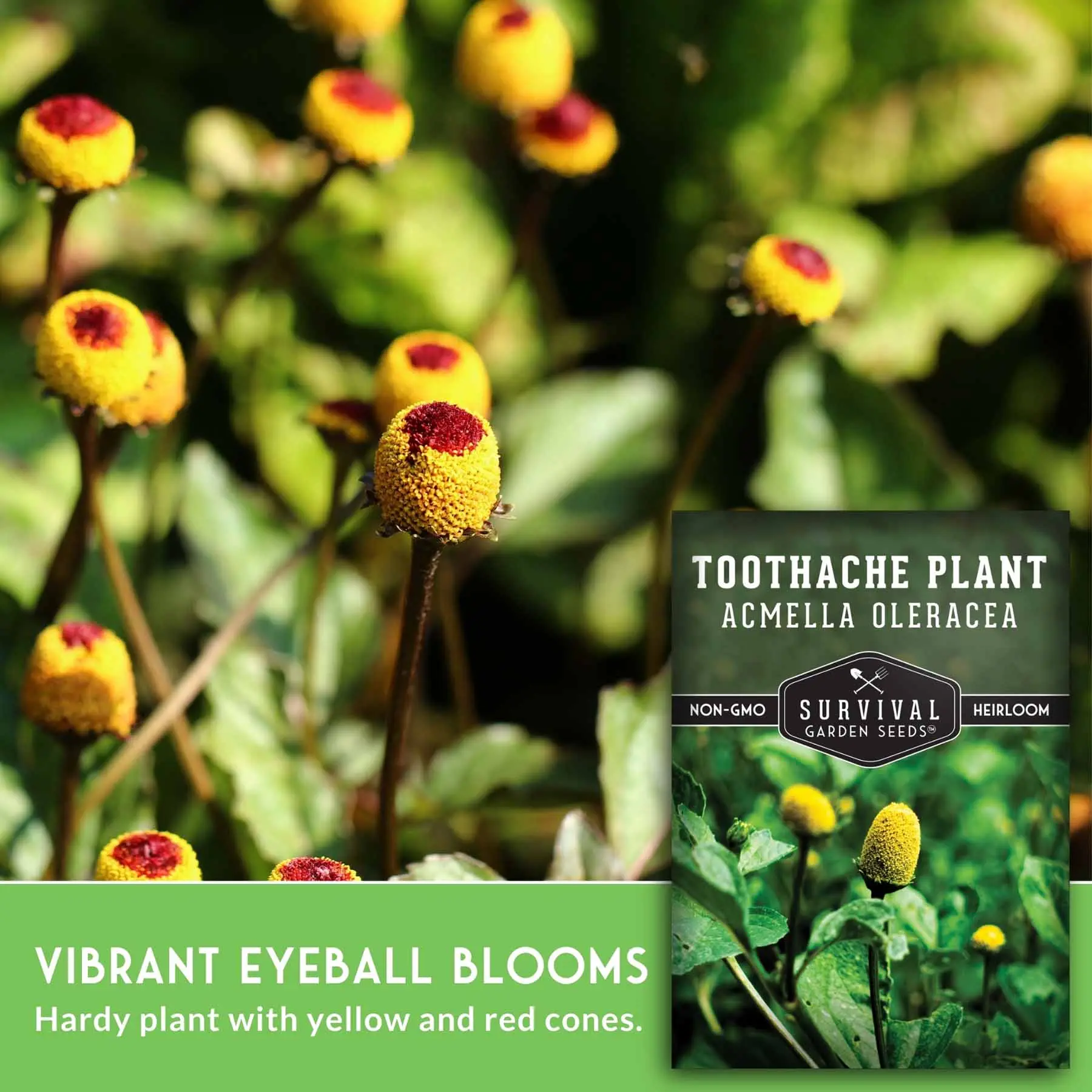 ·Attractive & Hardy Plant - Grow the Toothache plant, also known as Electric Daisy, produces vibrant yellow and red cone-shaped 'eyeball' flowers and glossy green foliage that grows in a low bushy shape reaching up to 2 feet. This tender perennial herb can tolerate various soil conditions and thrive both indoors and outdoors. In Zones below 10, it is grown as an annual unless moved indoors over winter.