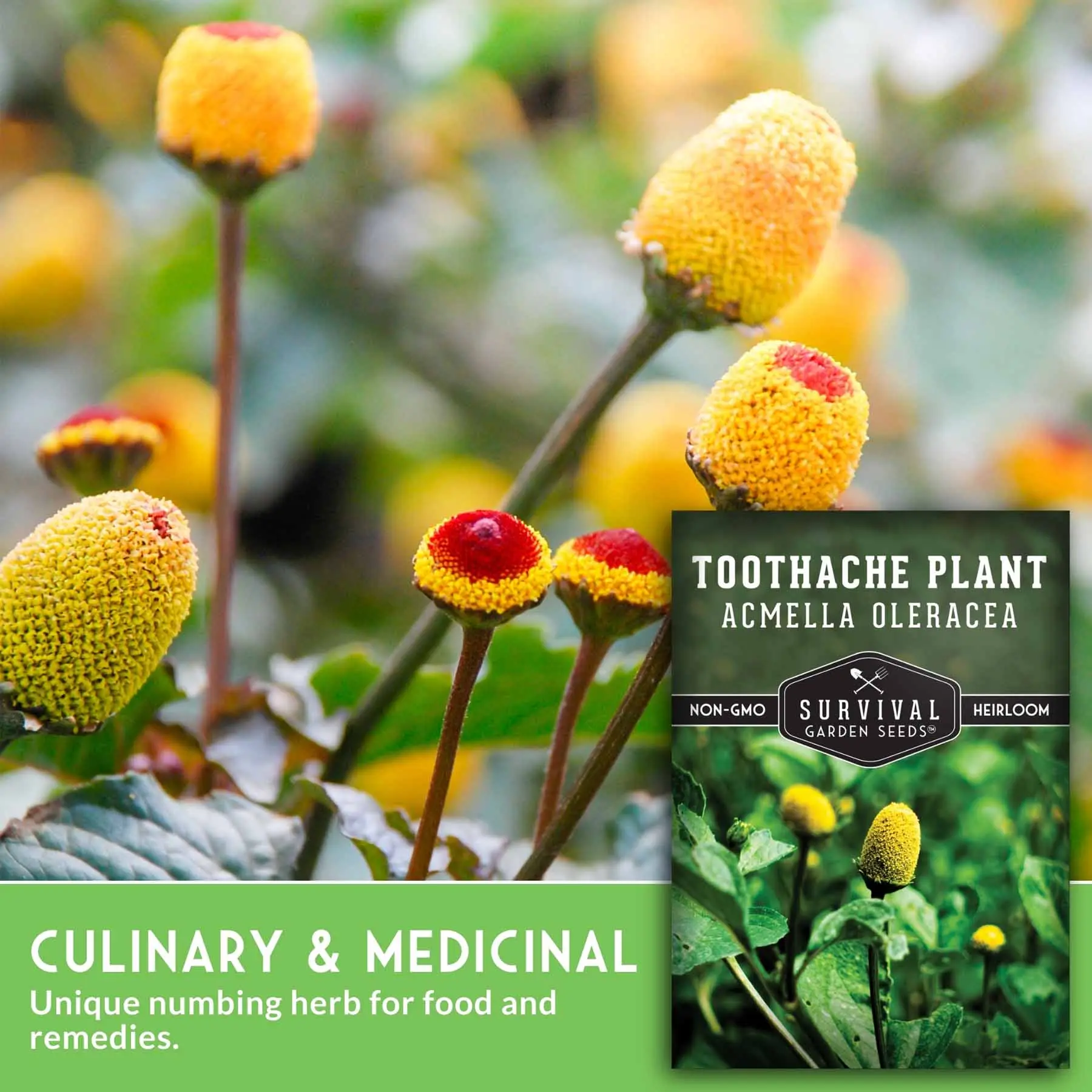 Toothache Plant (Acmella Oleracea), also known as Electric Daisy, is a fascinating plant with numbing properties and a unique flavor profile that can be used to numb a tooth with an ache, as its name suggests. It also is useful in various culinary dishes. Its vibrant, cone-shaped flowers make it a beautiful addition to any garden.