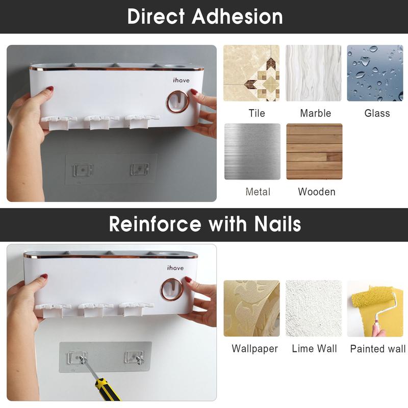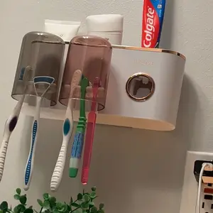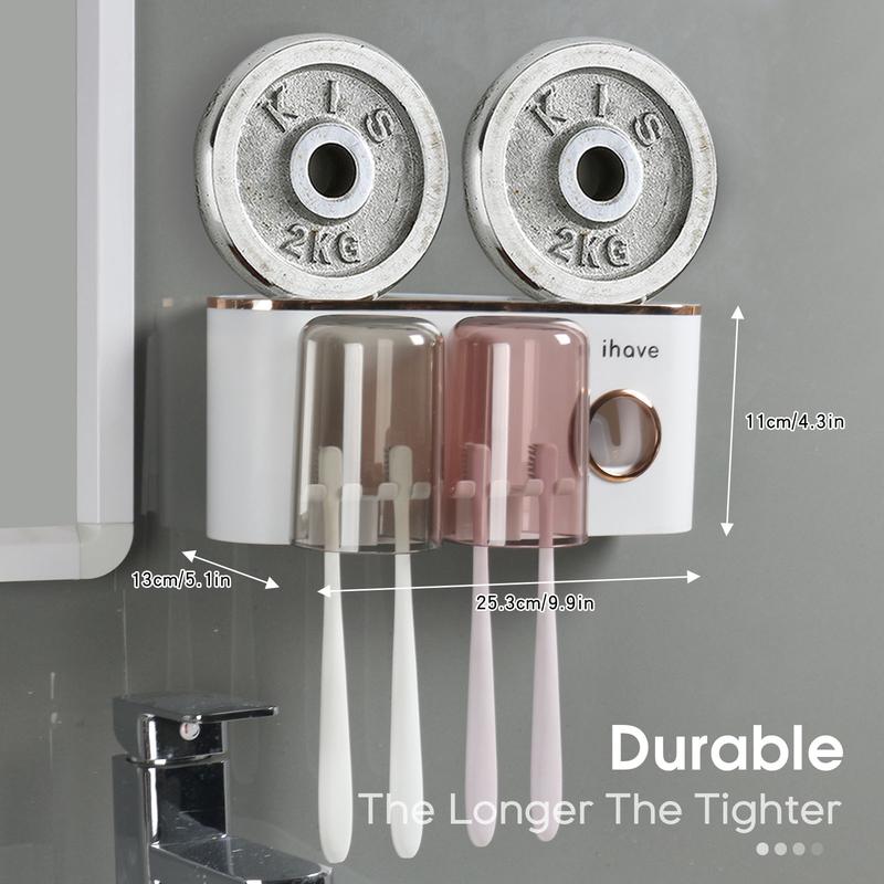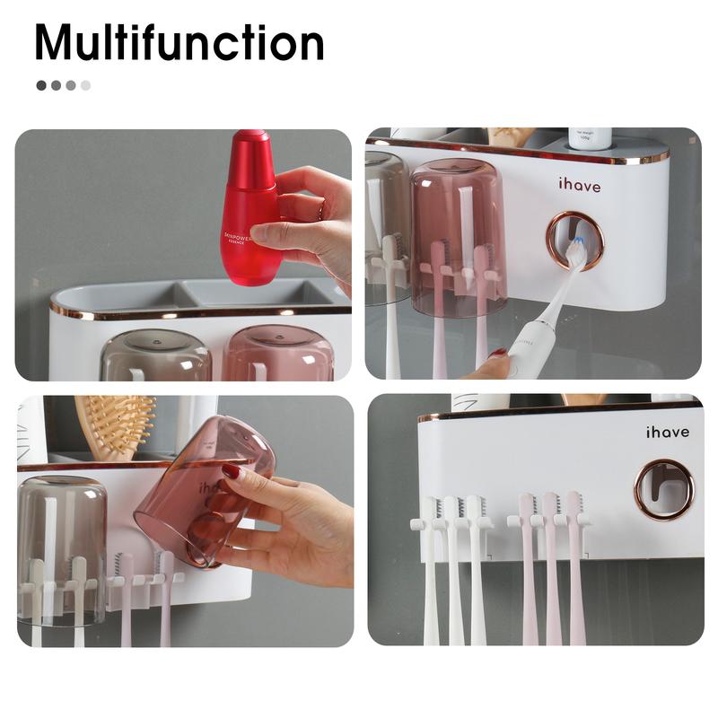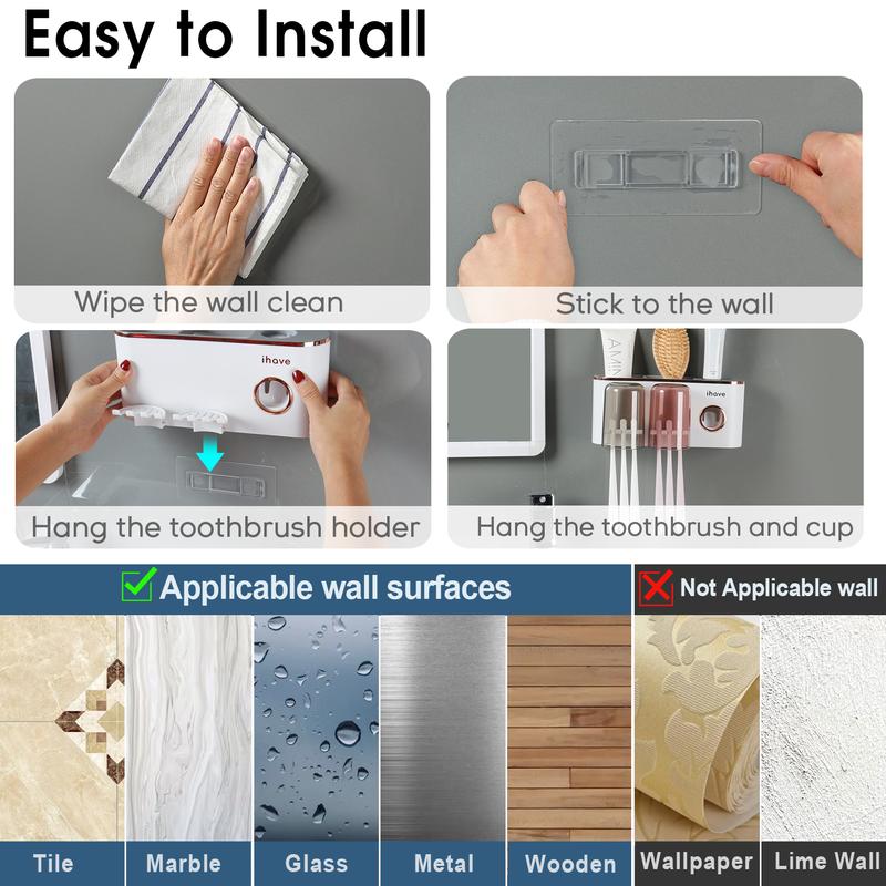 ·Multifunction: This bathroom storage with an automatic toothpaste dispenser, easy to squeeze toothpaste without waste, can hang 4 toothbrushes and 2 magnetic cups with covers, dust-proof and waterproof.