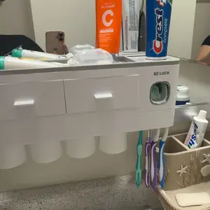 Dual Automatic Toothpaste Dispensers: The set includes dual automatic toothpaste dispensers, suitable for separate adult and child toothpaste, ensuring that both kids and adults can use the dispensers conveniently.