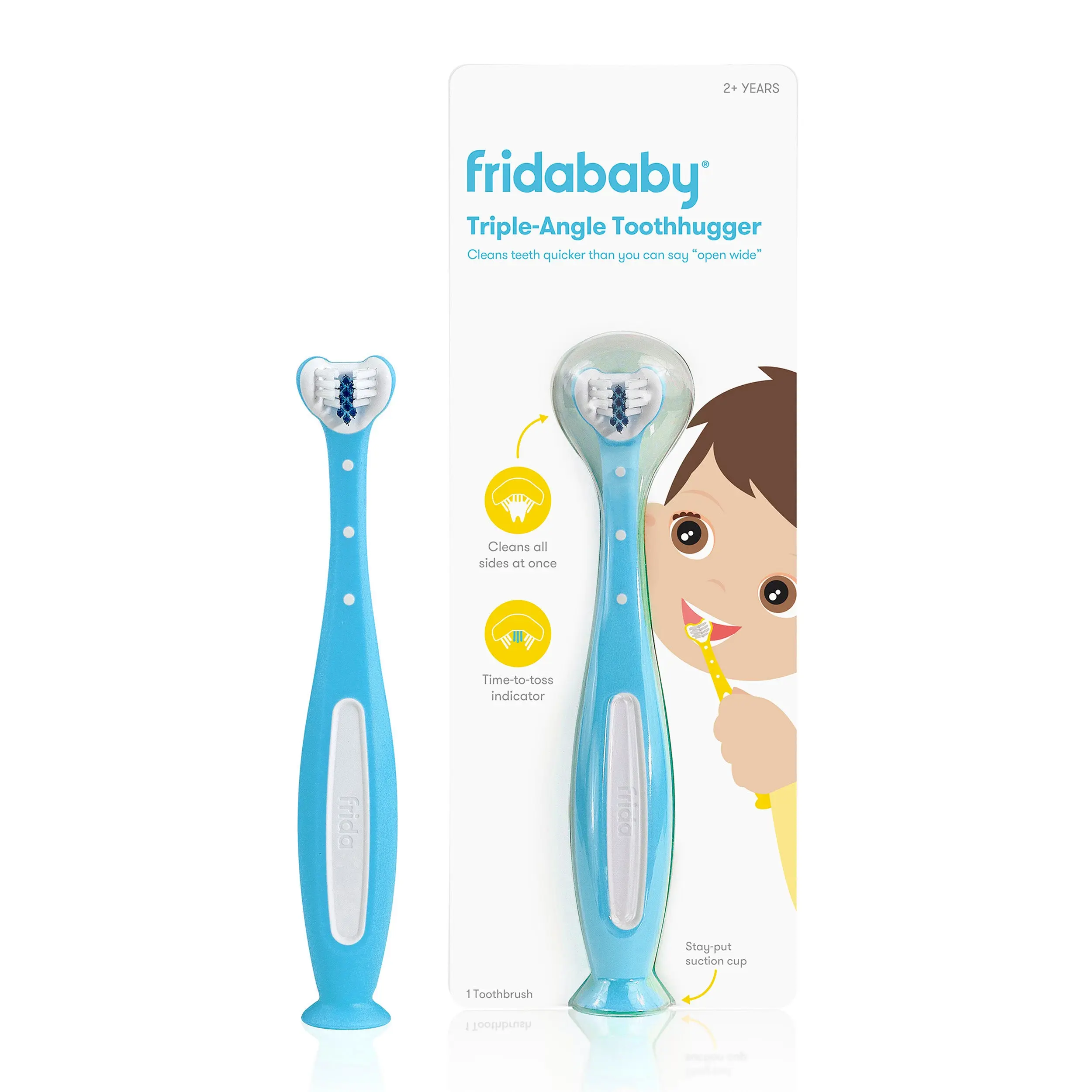 Put the brushing battle to bed! The Toothhugger's unique triple-angle brush head attacks plaque fast by cleaning all sides at once. Specially designed with little brushers in mind, its easy-to-hold handle suctions to surfaces, while soft bristles are gentle on sensitive gums and even change colors to let you know when it's time to replace.