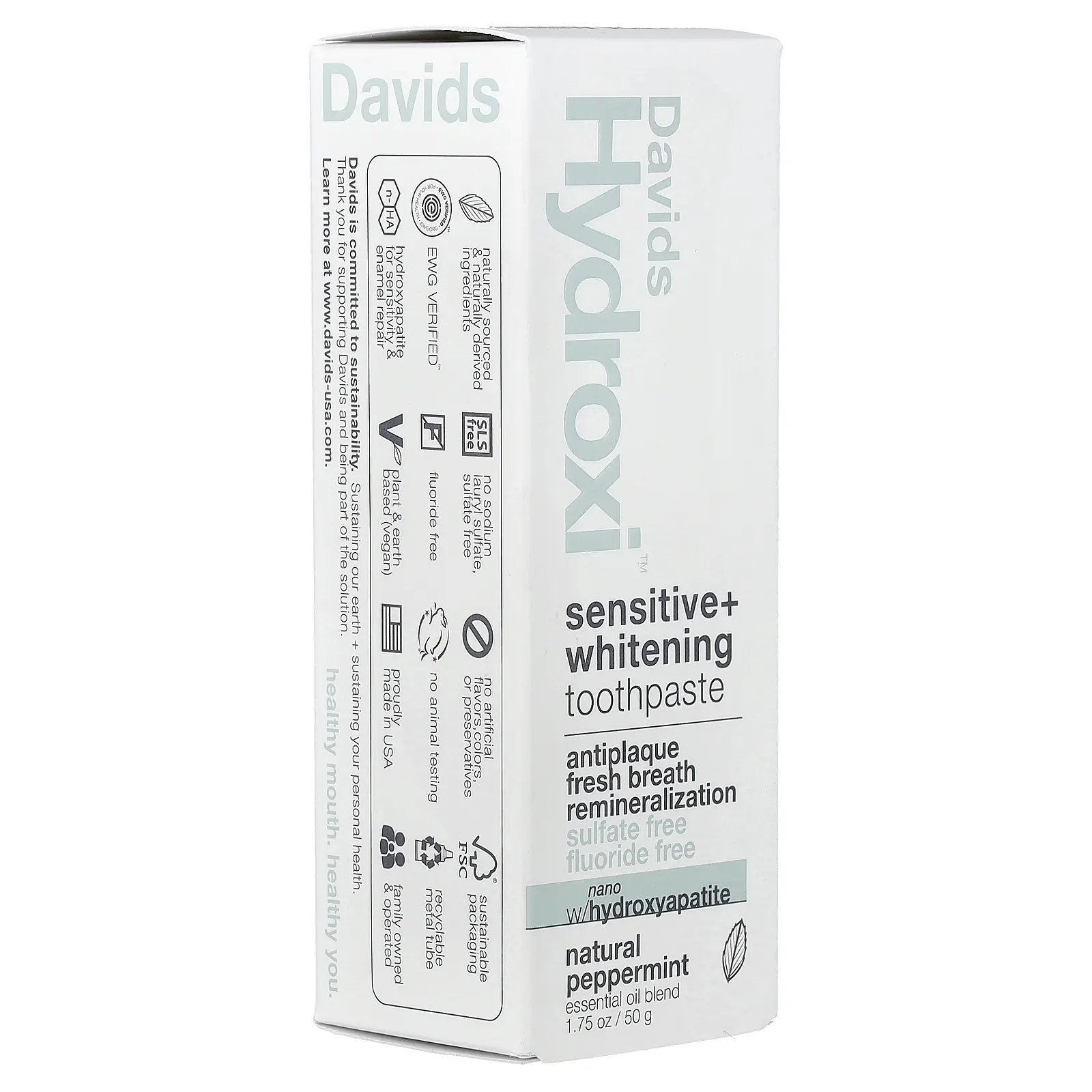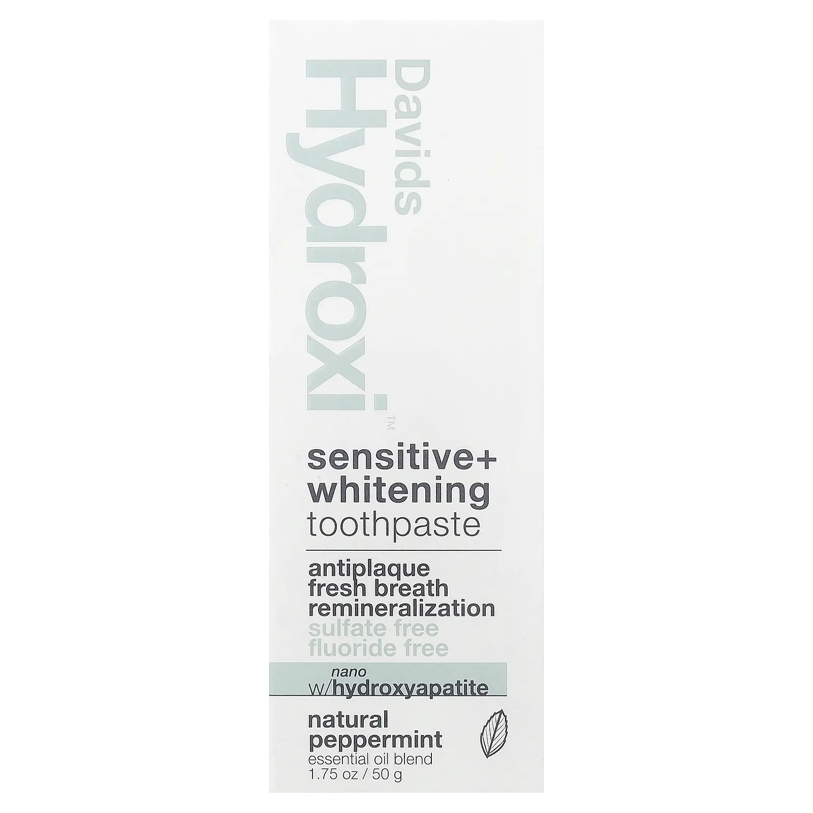 David’s Hydroxi Sensitive + Whitening Toothpaste 	‱	Uses nano‑hydroxyapatite (n‑HA) to repair enamel, reduce sensitivity, and gently whiten via baking soda and silica