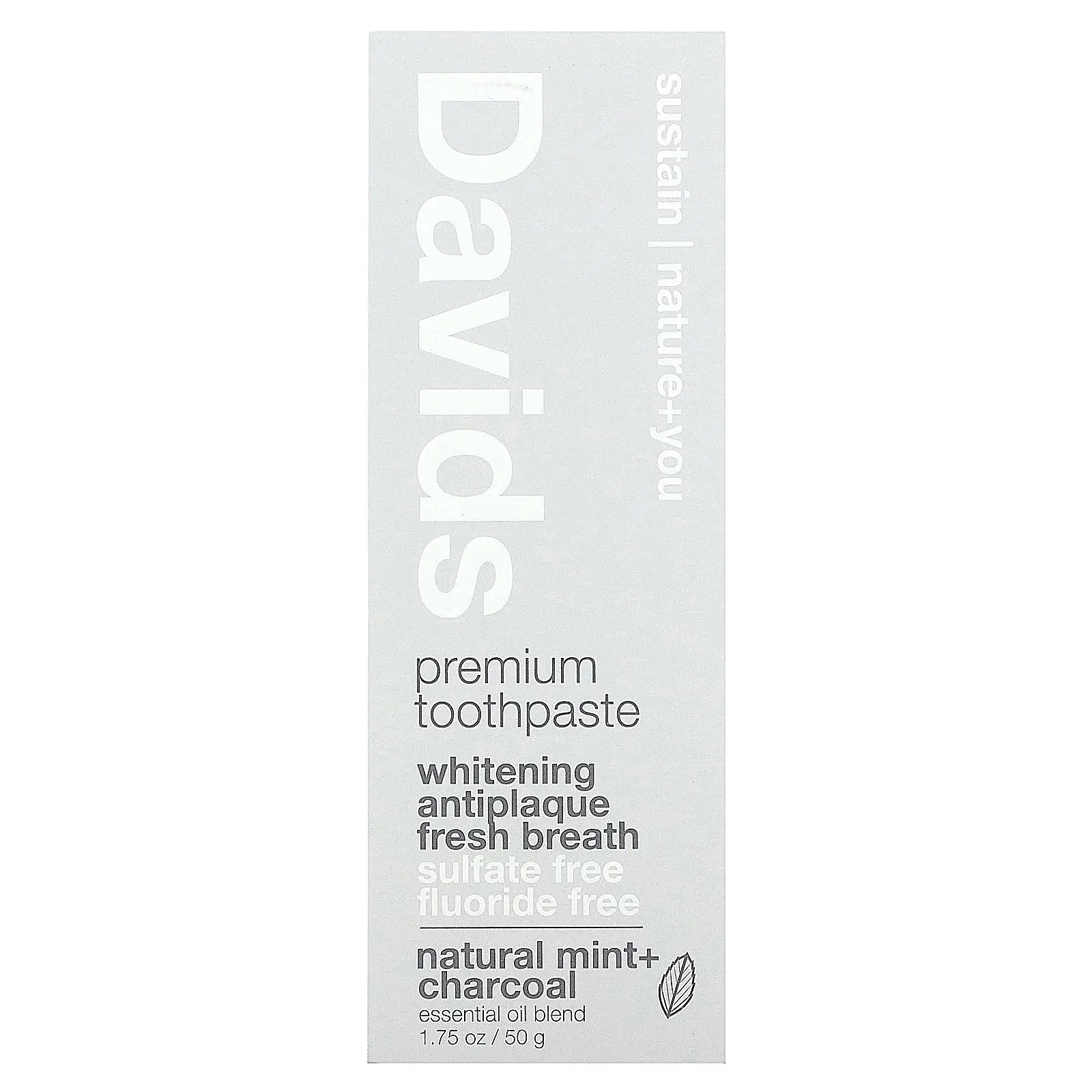 Davids Premium Toothpaste, Whitening + Antiplaque, Natural Mint + Charcoal, 1.75 oz (50 g)