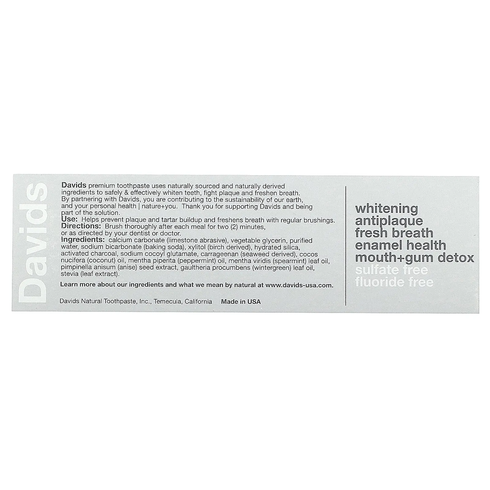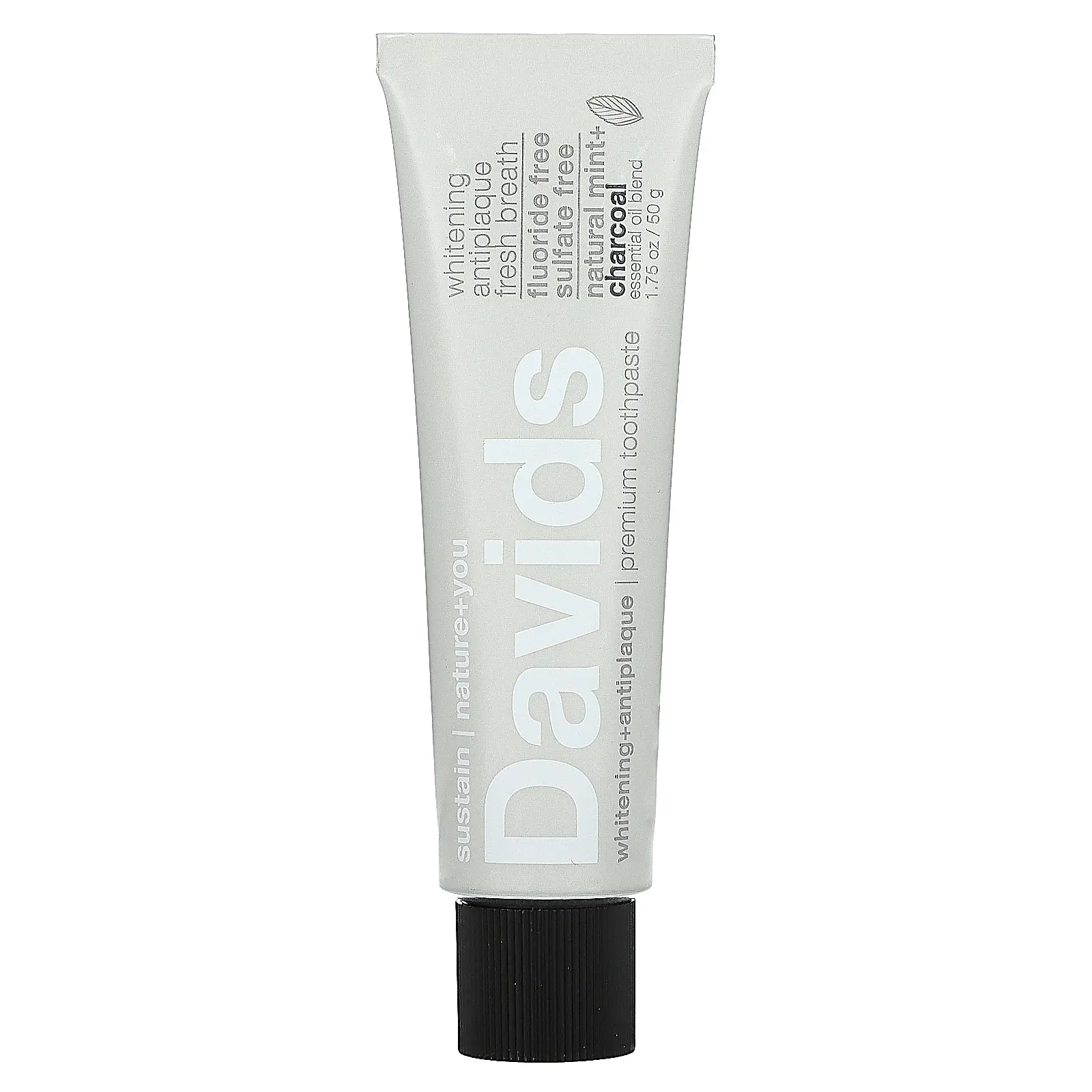 5. Davids Premium Toothpaste, Whitening + Antiplaque, Natural Mint + Charcoal, 1.75 oz (50 g)