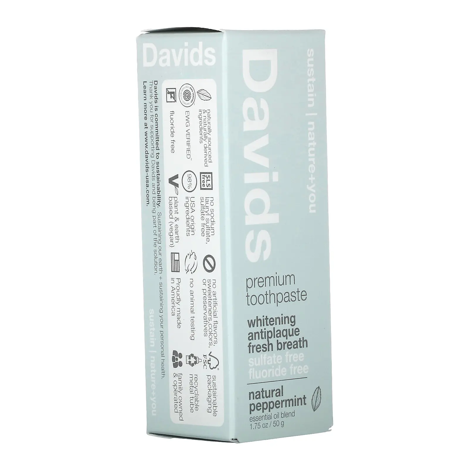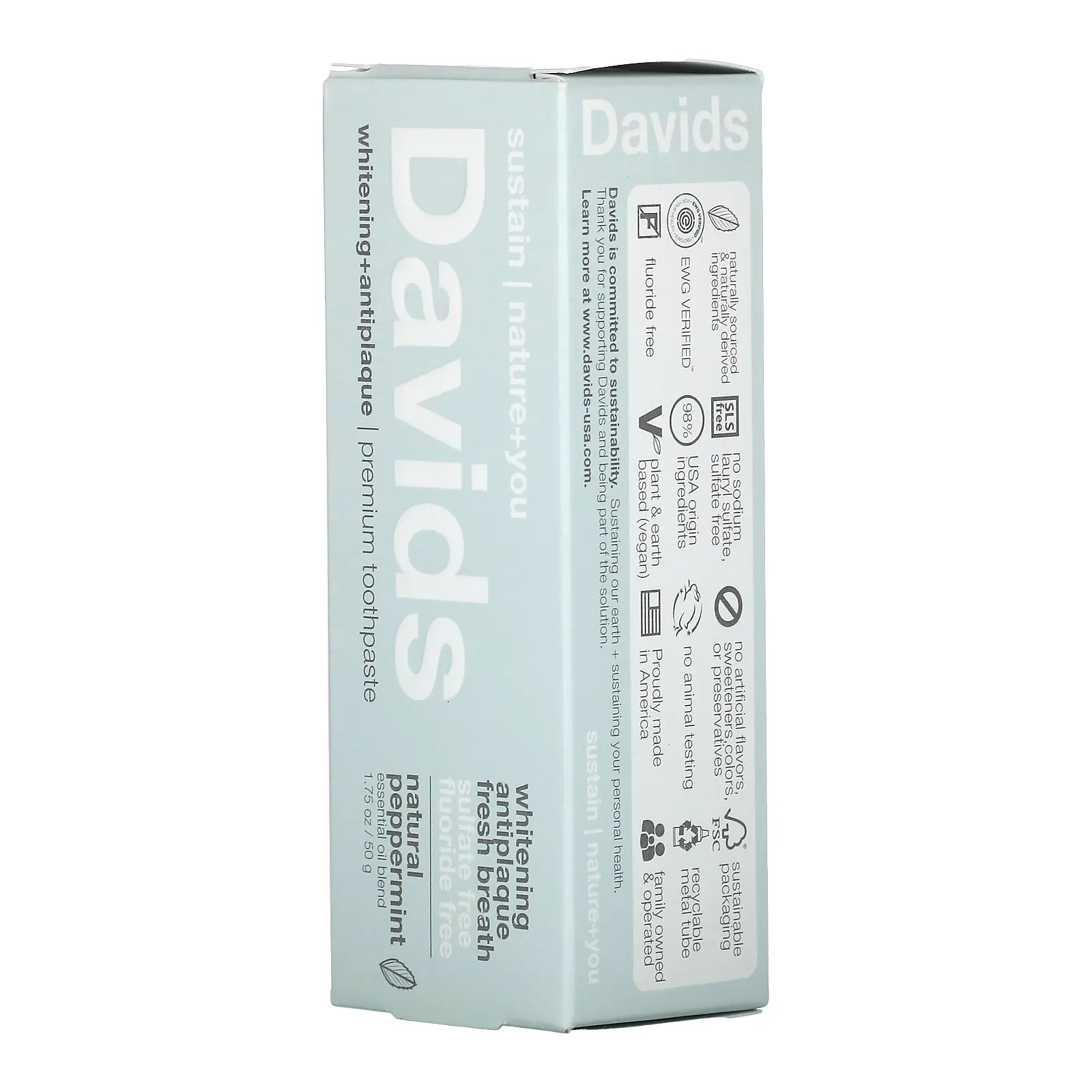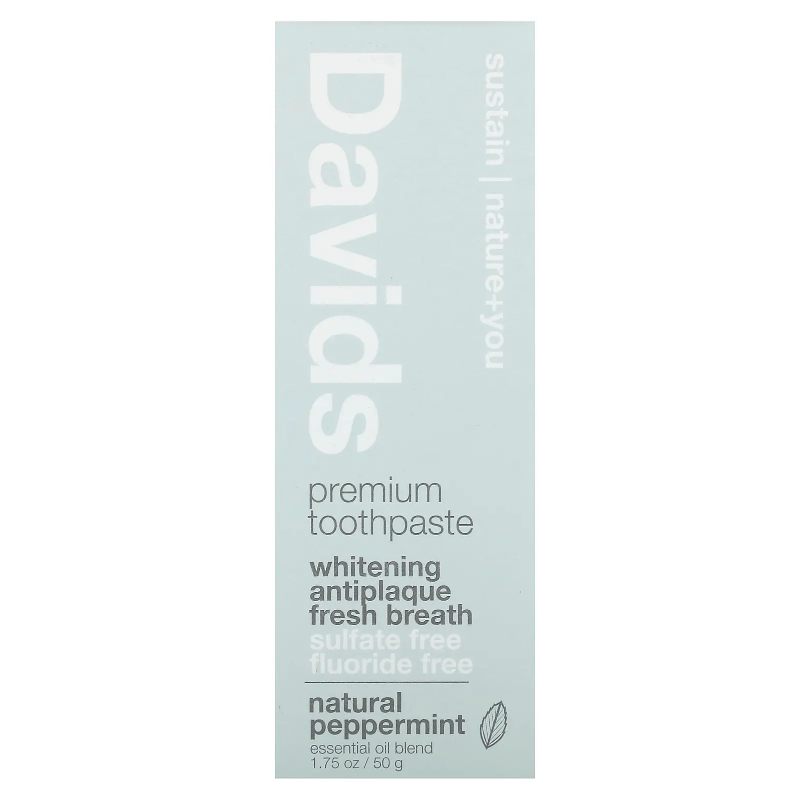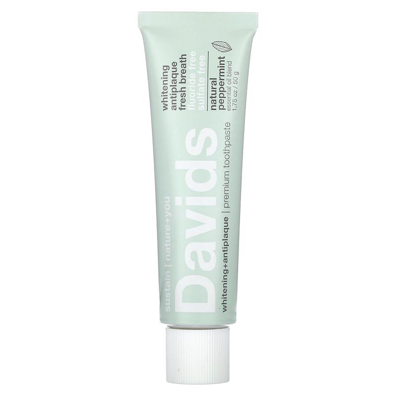 Davids Premium Toothpaste, Whitening + Antiplaque, Natural Peppermint, 1.75 oz (50 g)