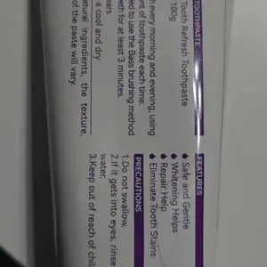 Doesn't even have an active ingredients list for you to know what you're using or putting into your mouth. The product on the back is list as "Tooth Refresh Toothpaste".