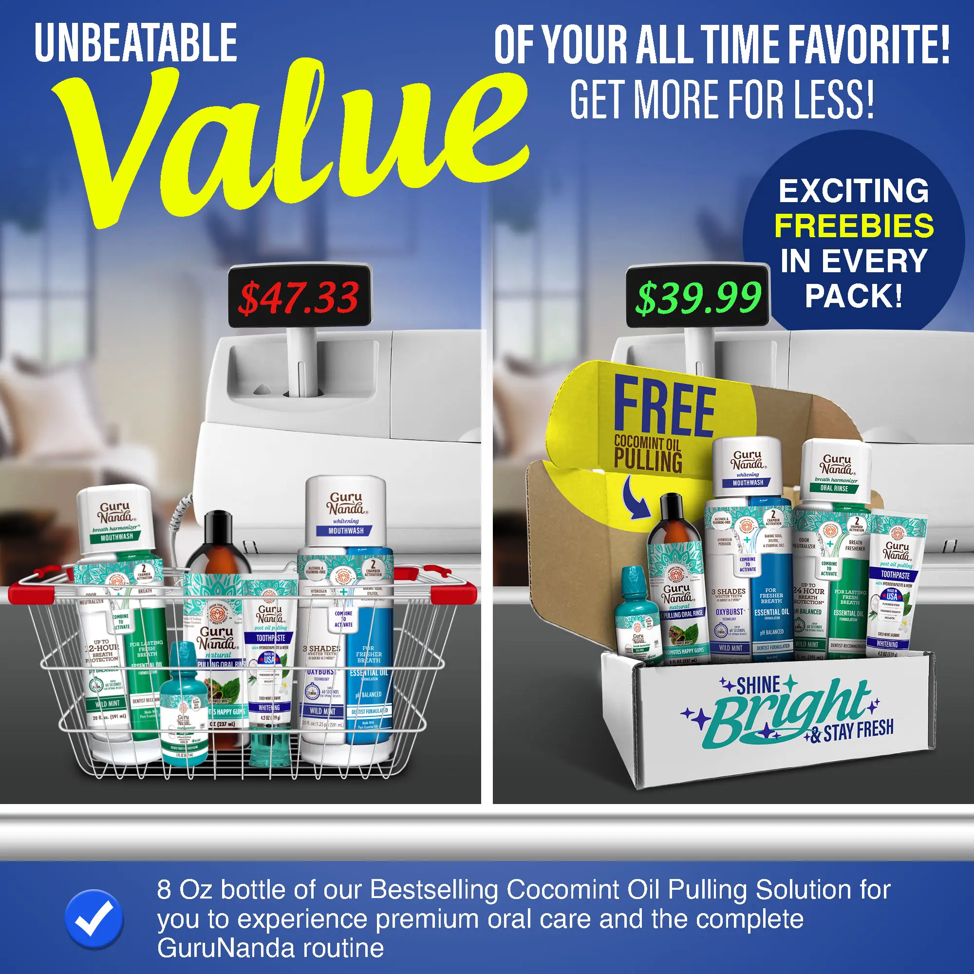GUM CARE GAME-CHANGER: Kickstart a new addition to your oral routine with the complimentary GuruNanda CocoMint Oil Pulling in this bundle. Perfect for supporting gum hygiene, naturally whitening teeth, and freshening breath—your first step to happier gums and a radiant, healthier smile!