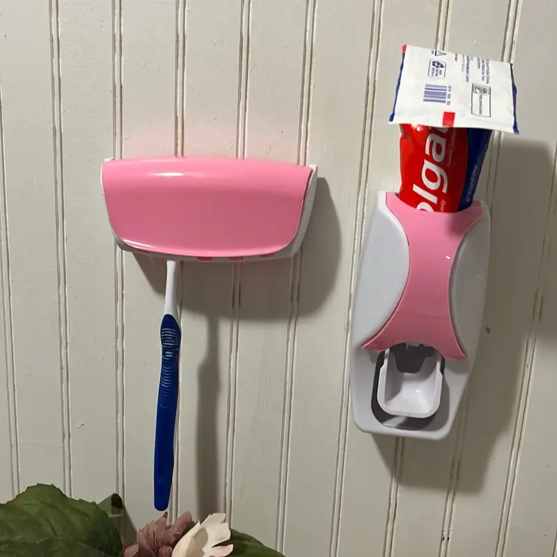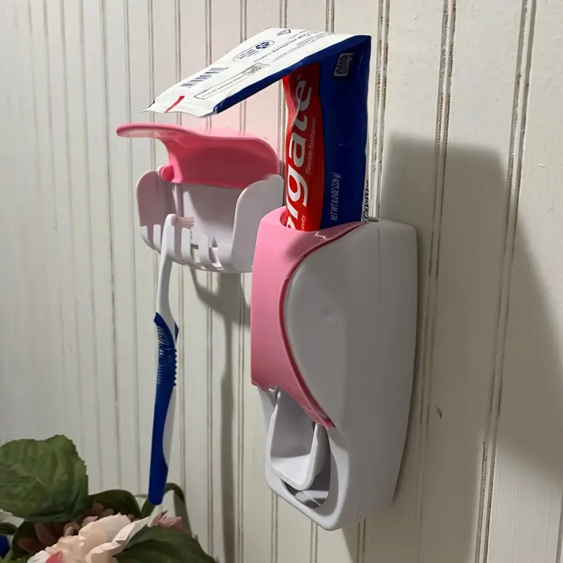 Toothpaste squeezing dispenser and toothbrush holder