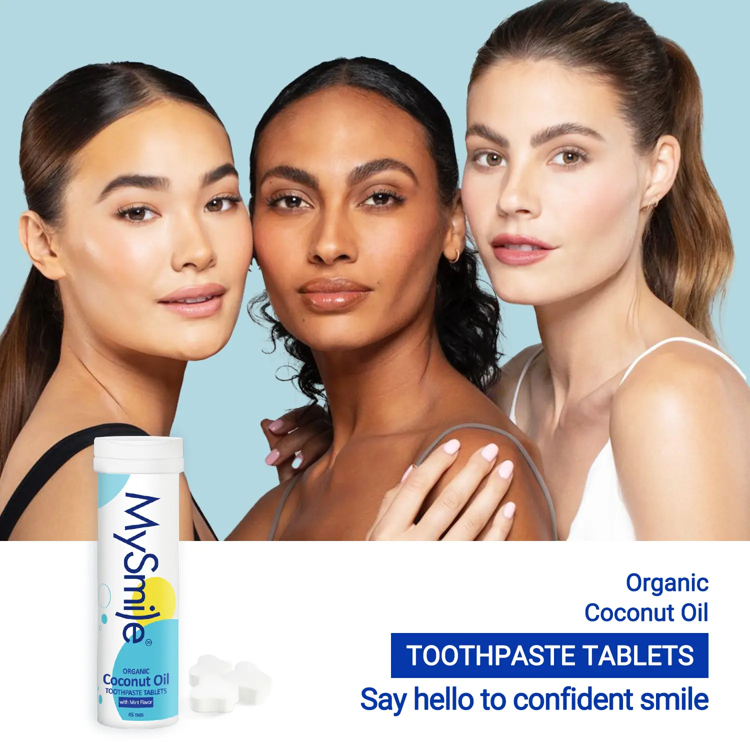 Keep your teeth healthy and shining with MySmile Toothpaste Tablets enriched with aloe and coconut oil. These natural toothpaste tablets are perfect for travel-friendly oral care teeth whitening, made with 100% vegan and cruelty-free ingredients.