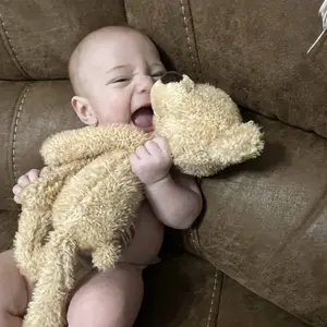 This bear is a must have for newborns and toddlers. The material is beautiful. The bear itself is adorable and the nice part is it has a tag if it’s lost it can be placed back in the rightful owner’s hands.