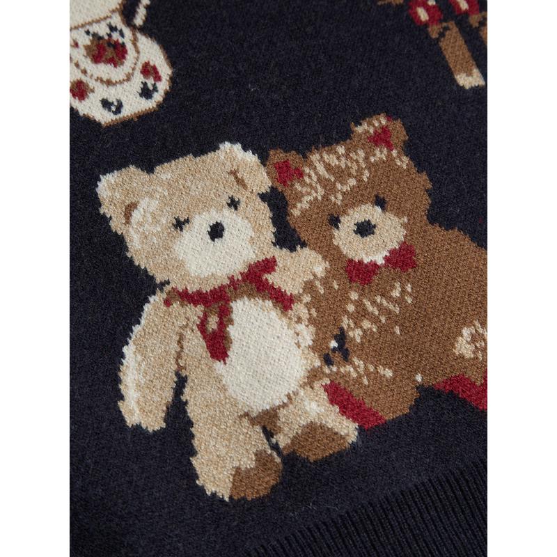 5. Cider [size 2-10] Knit Round Neckline Bear Bowknot Contrasting Binding Long Sleeve Top