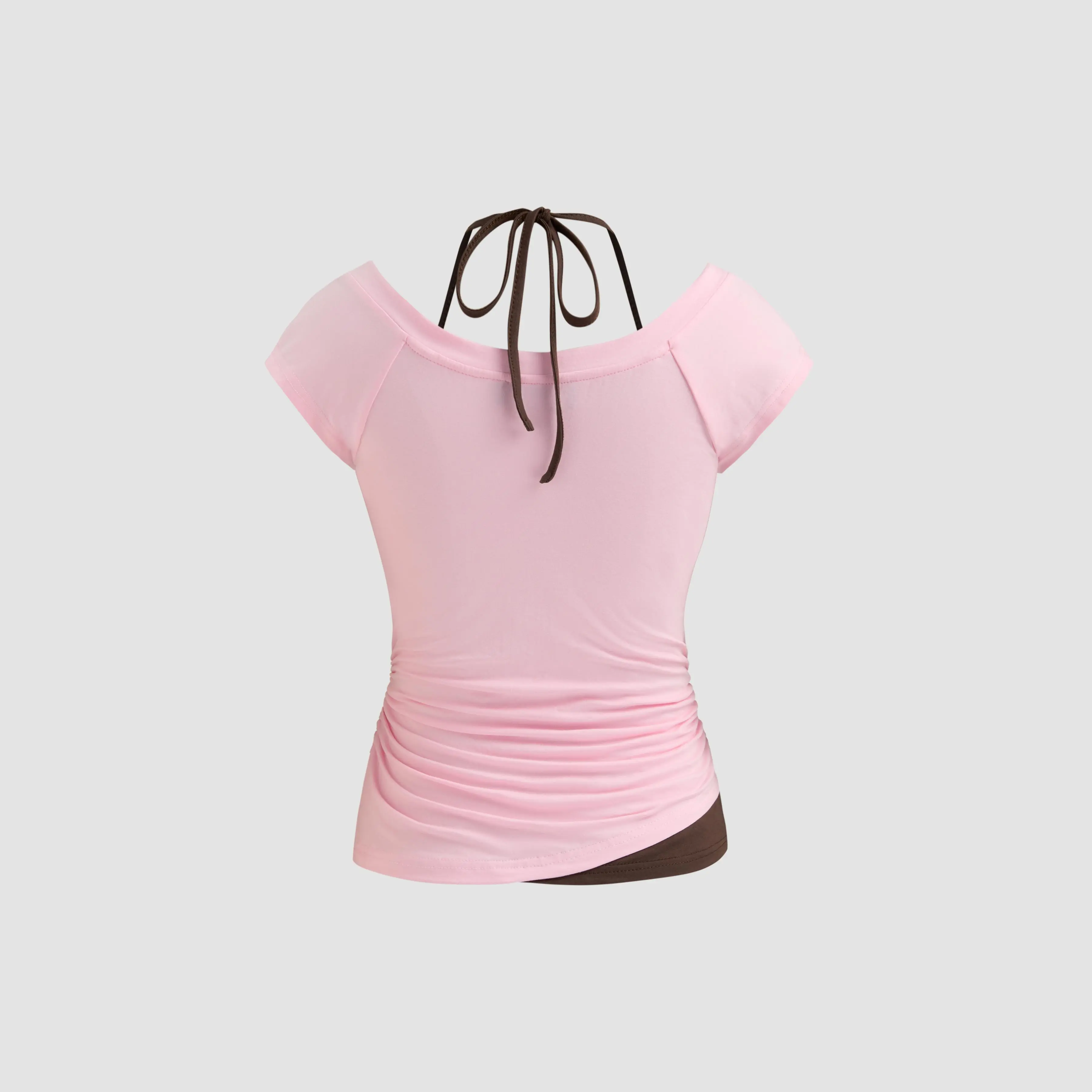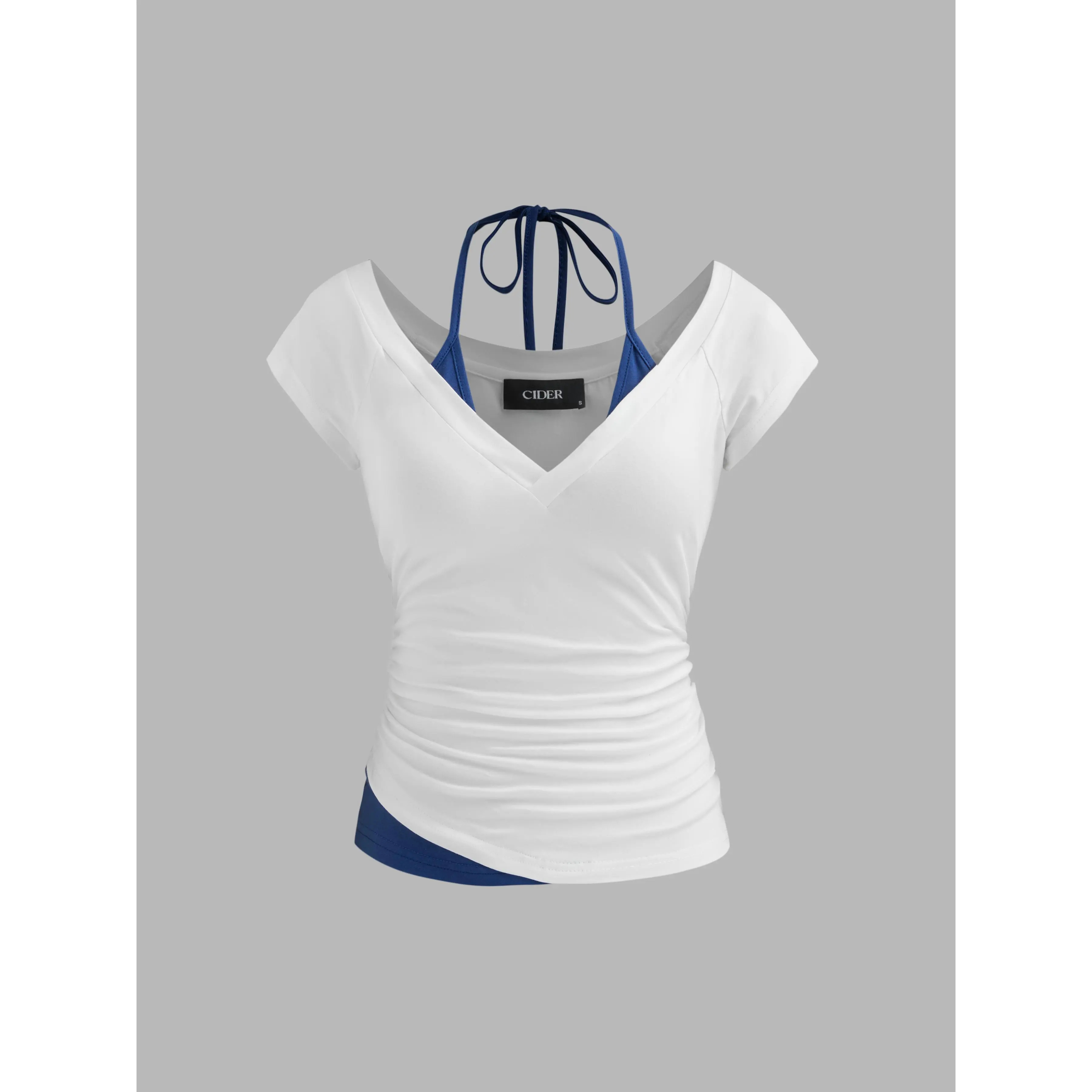5. Cider [6 colors, size 0-26] Halter Neckline Patchy Short Sleeve Top