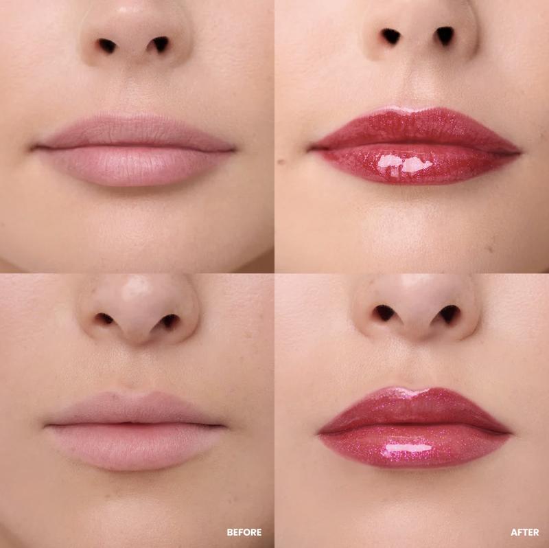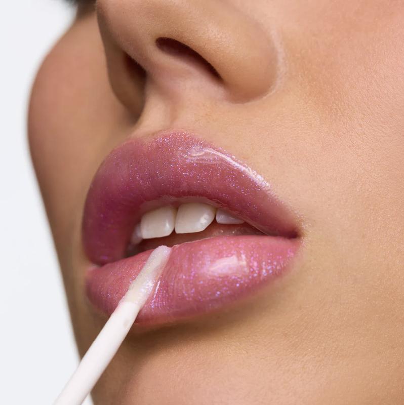 This lightweight, non-sticky gloss delivers mirror-like shine and buildable shimmer that looks as luxe IRL as it does on camera. Ultra-fine glitter pigments catch the light to instantly make lips look fuller, smoother and more defined. Wear one swipe for a soft glimmer or build it up for a bold, saturated sparkle.
