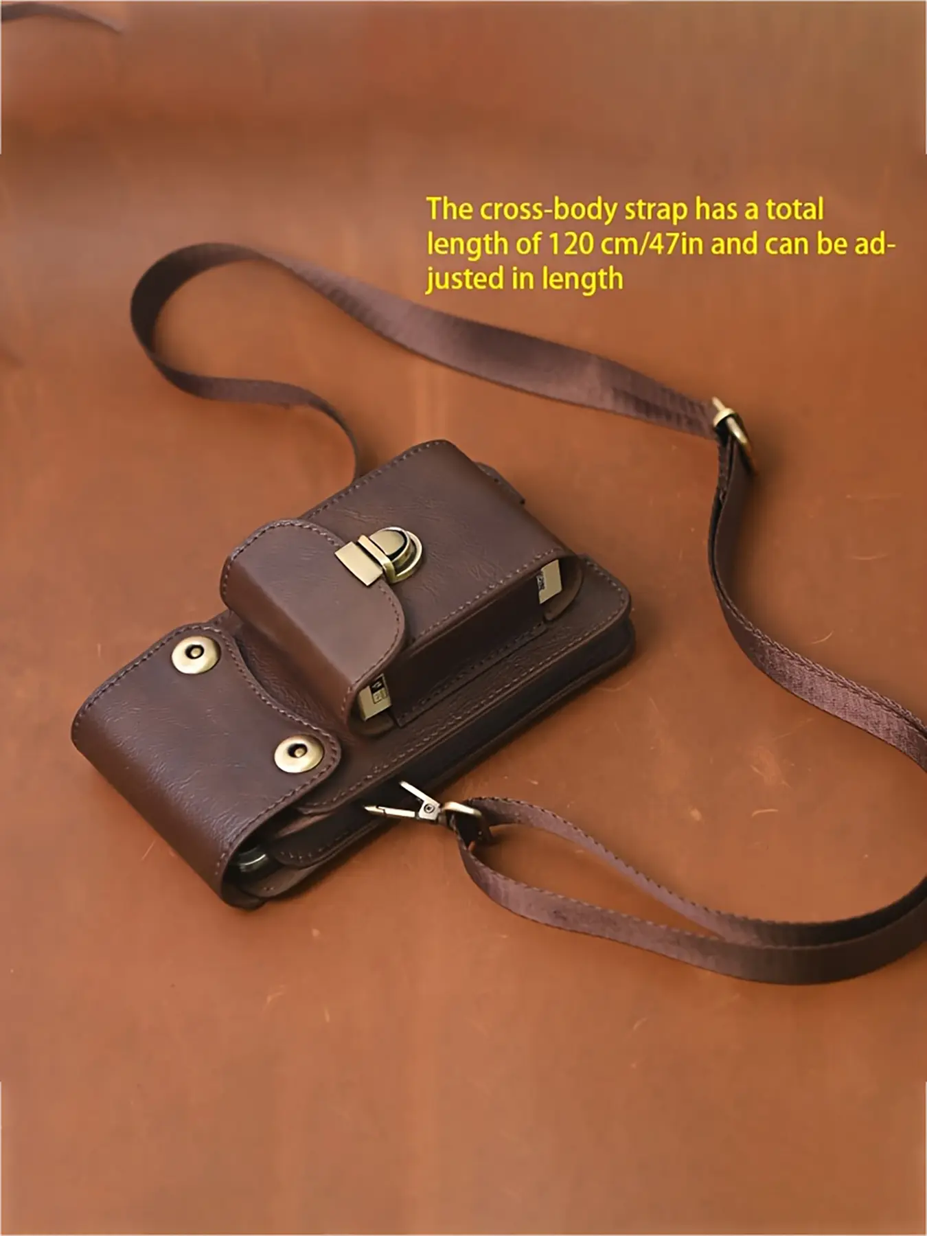 Top Layer Cowhide Vertical Mobile Phone Bag, Multi-Function Thickened Belt Key Bag, Multi-Layer Waist Bag Crossbody Bag