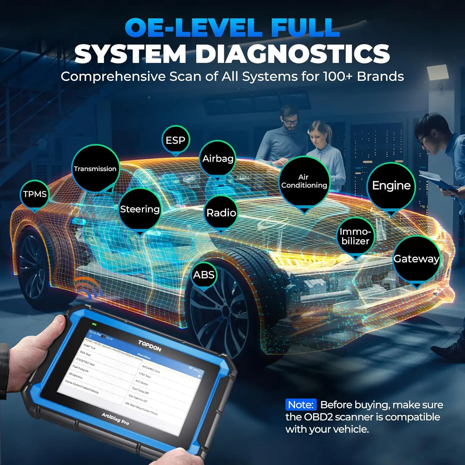 ·The ArtiDiag Pro scanner allows the user to perform a comprehensive scan of all systems including engine, transmission, airbag, ABS, ESP, TPMS, immobilizer, gateway, steering, radio, and air conditioning for more than 100 brands.