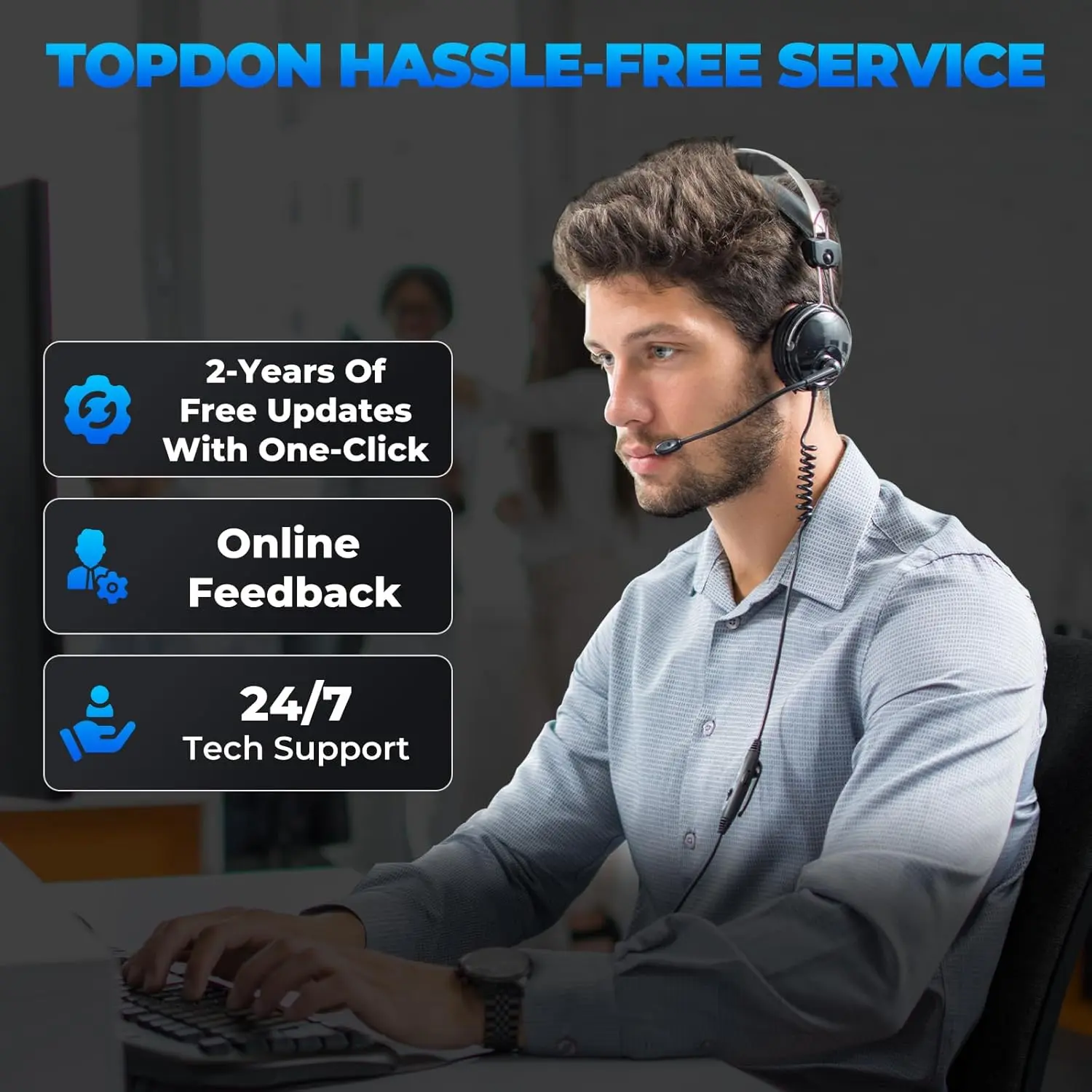 ·OE-Level all system diagnostics to dive deep into vehicle systems including Engine, Transmission, Airbag, ABS, ESP, and TPMS for 100+ brands.