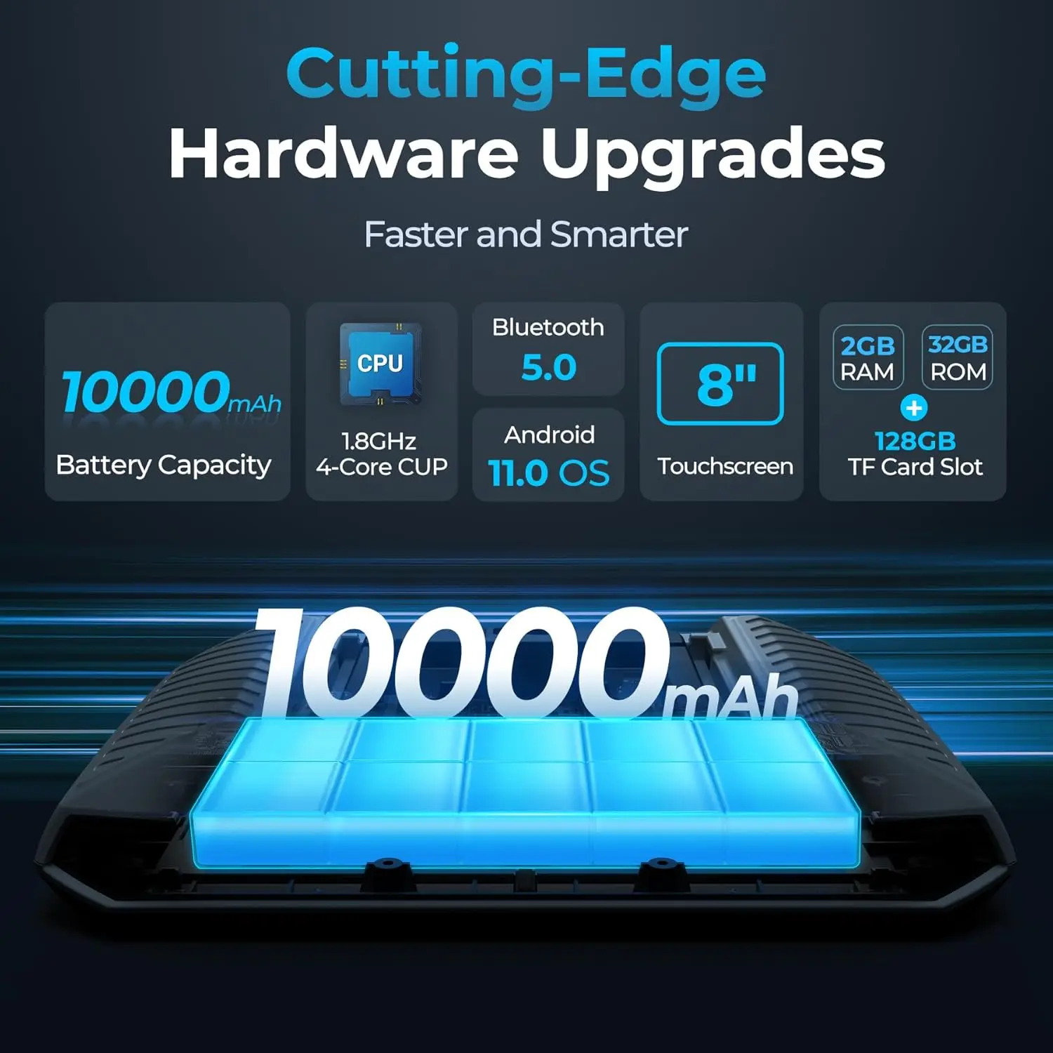 · Topdon ArtiDiag900 Lite scanner has enhanced hardware and latest features, including Android 11.0, 5x faster CPU, 10000mAh battery for 12 hours of continuous operation, stable wireless diagnosis with Bluetooth 5.0, 8-inch touchscreen for a tablet-like user experience. Added bi-directional control, wireless diagnosis, battery testing (optional), and DTC repair guide, provide an unparalleled diagnostic experience at an affordable price.