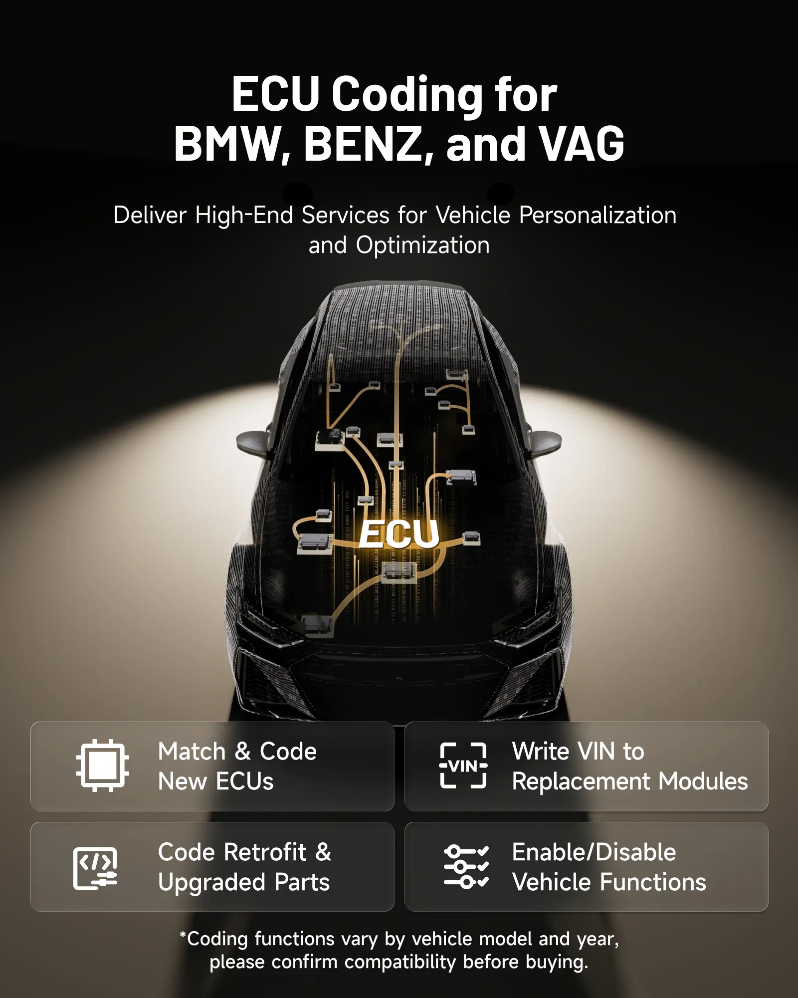 ·TOPDON ONE is a full-featured bidirectional OBD2 scanner built for modern workshops. It delivers full system diagnostics, 50+ service functions, ECU coding for BMW, Mercedes-Benz, and VW, guided VAG diagnostics, gateway access for FCA AutoAuth, Nissan AutoAuth, and VAG SFD, and support for advanced protocols including CAN-FD, DoIP, and J2534—helping technicians diagnose faster, work smarter, and expand service capability.