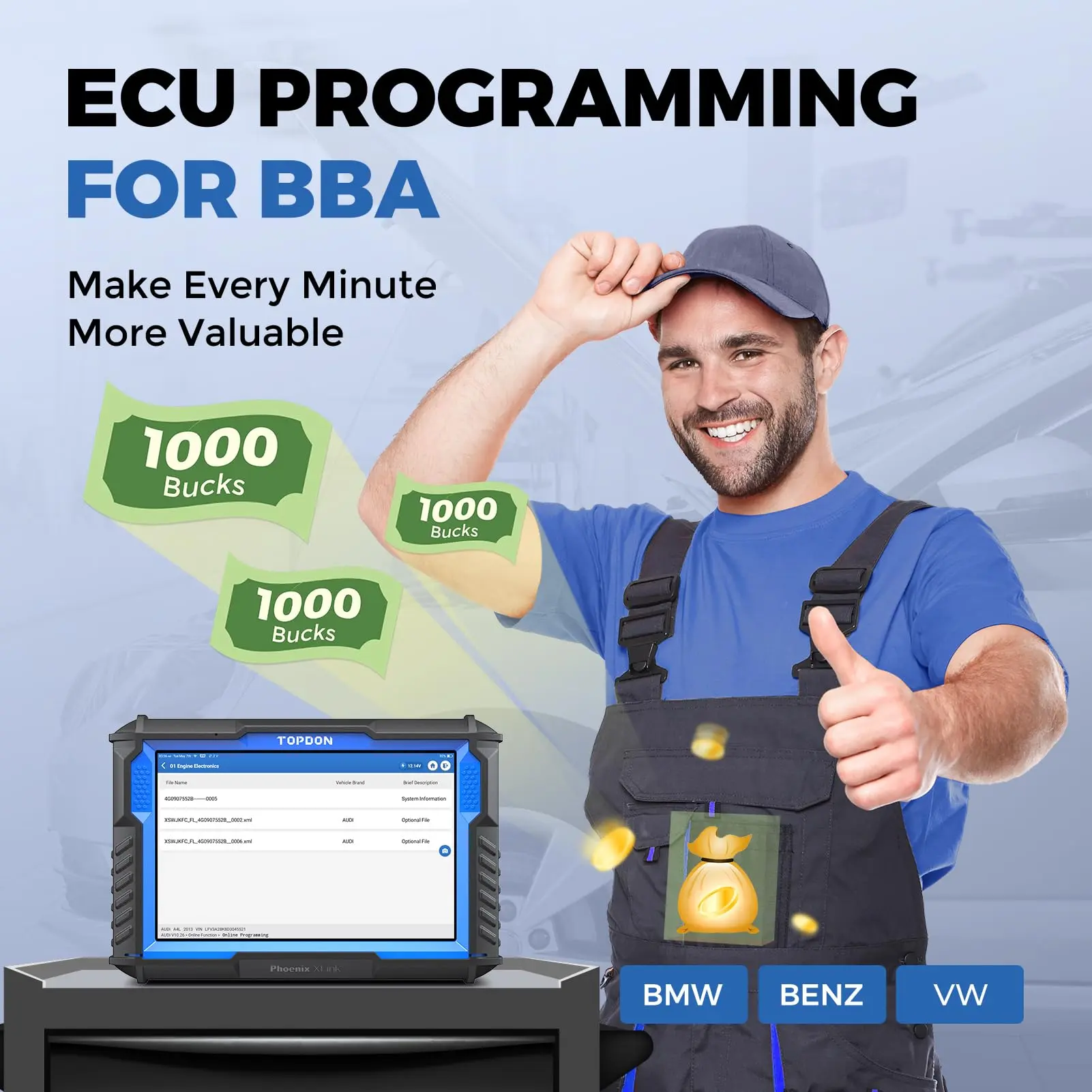 🚀 Essential for 2026 Professionals: The TOPDON Phoenix XLink is an advanced ECU programming tool, enabling cloud-based programming for BMW and Benz vehicles. It supports ECU matching and replacement, facilitates new ECU programming, and allows for software upgrades. Ensure to back up your data before programming.