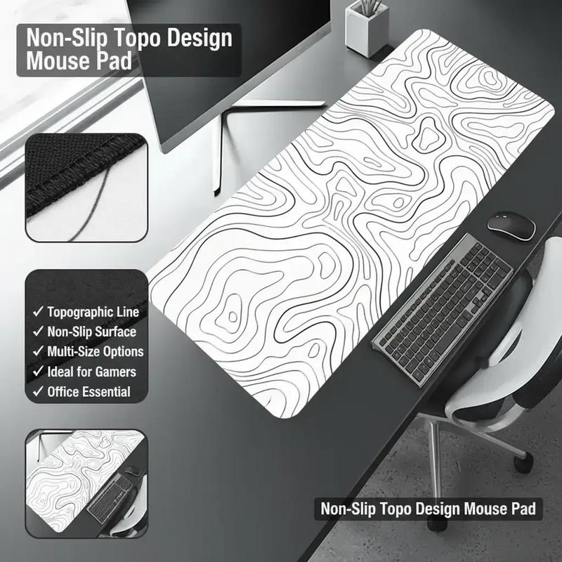 【Aesthetic Element】: Featuring a white topographic line pattern, this mousepad adds a unique touch to your desk setup.