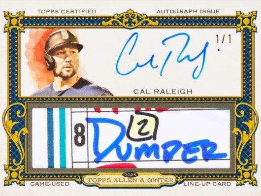 Tough chases include Cut Signatures, DNA Relics, Rip Cards, and Autographed Lineup Cards, which feature an authentic cut from a game-used lineup card.