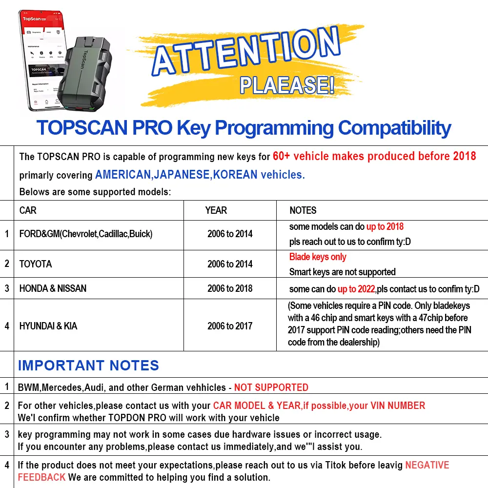 TOPPSCAN PRO can do: Key fob programming, bi-directional control/active test, full system diagnostics, 13 service functions, automatic vin read, DTC fault code read/clear & more