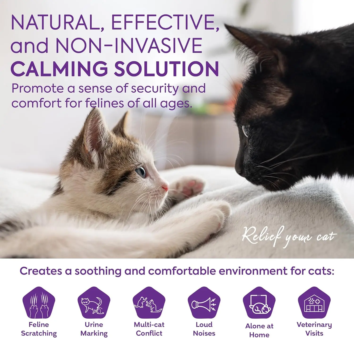 Cat Calming Diffuser - Calm Pheromones - Comfort Helps with Pee (2 Pack (2 Diffusers + 2 Refills)) Bottle Household Kit Lightweight Room Tool