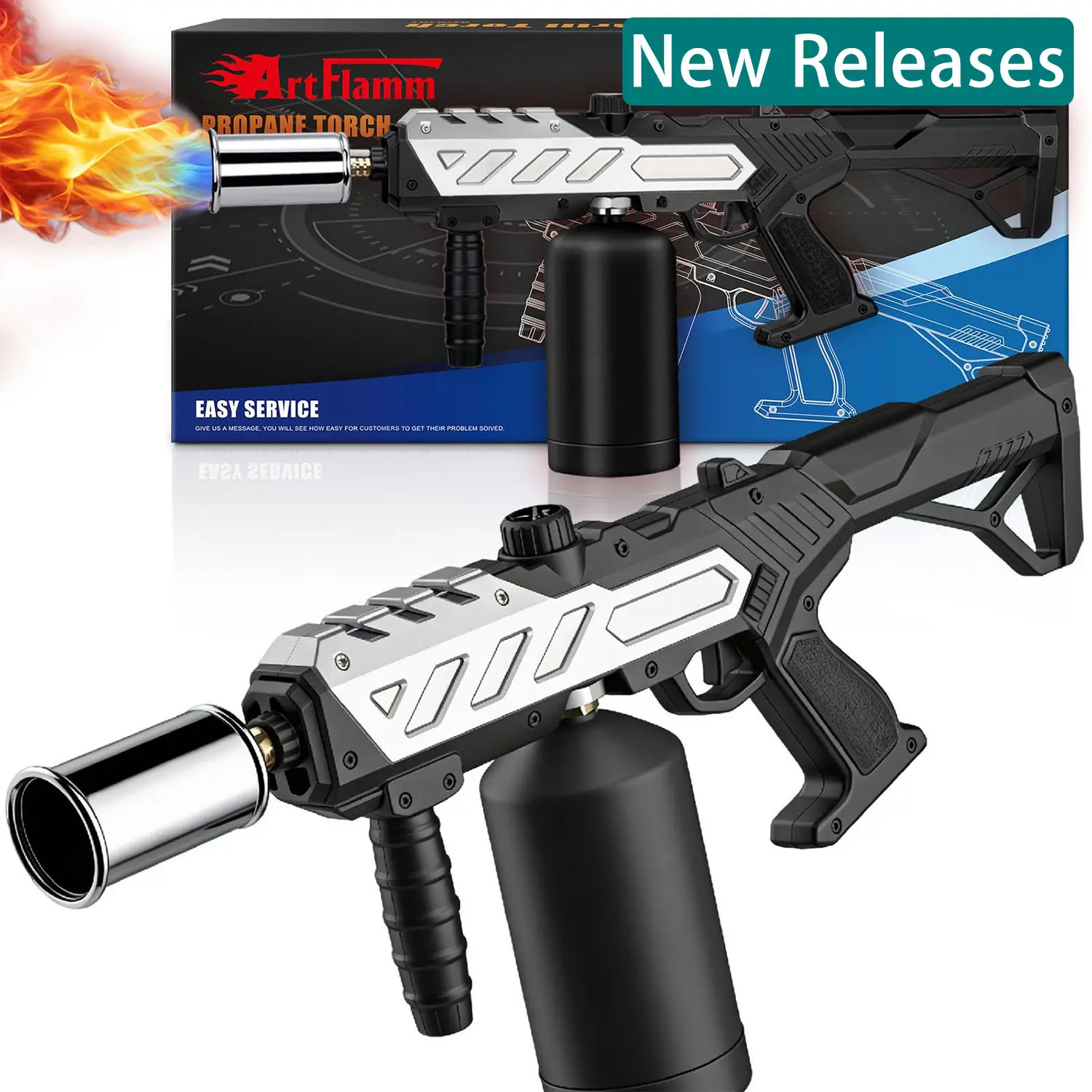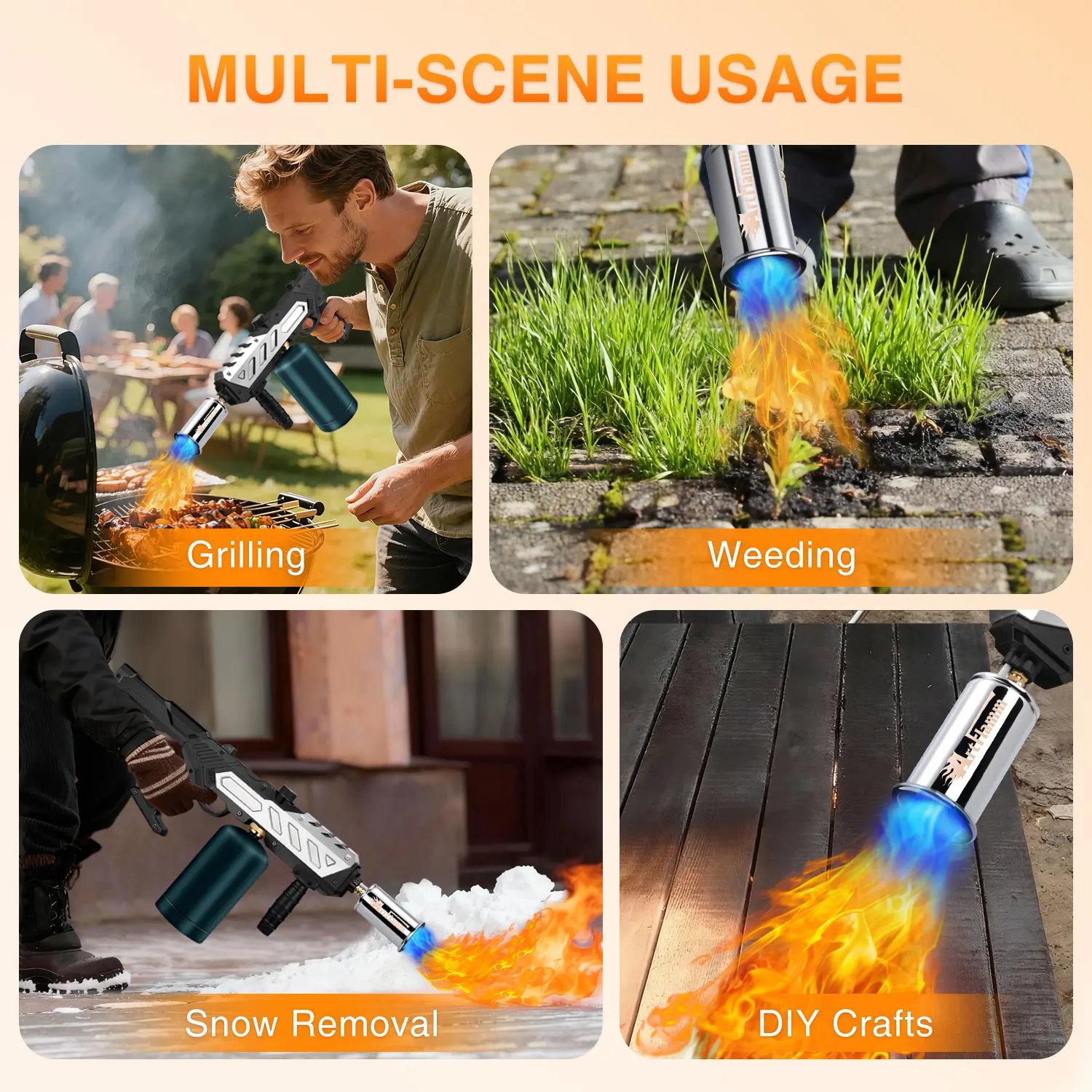 This propane torch gun is your kitchen and outdoor party essential. It handles tasks like searing steaks, caramelizing desserts, toasting bread, outdoor barbecue, lighting charcoal grills, bonfires, weeding, snow melting, and welding.