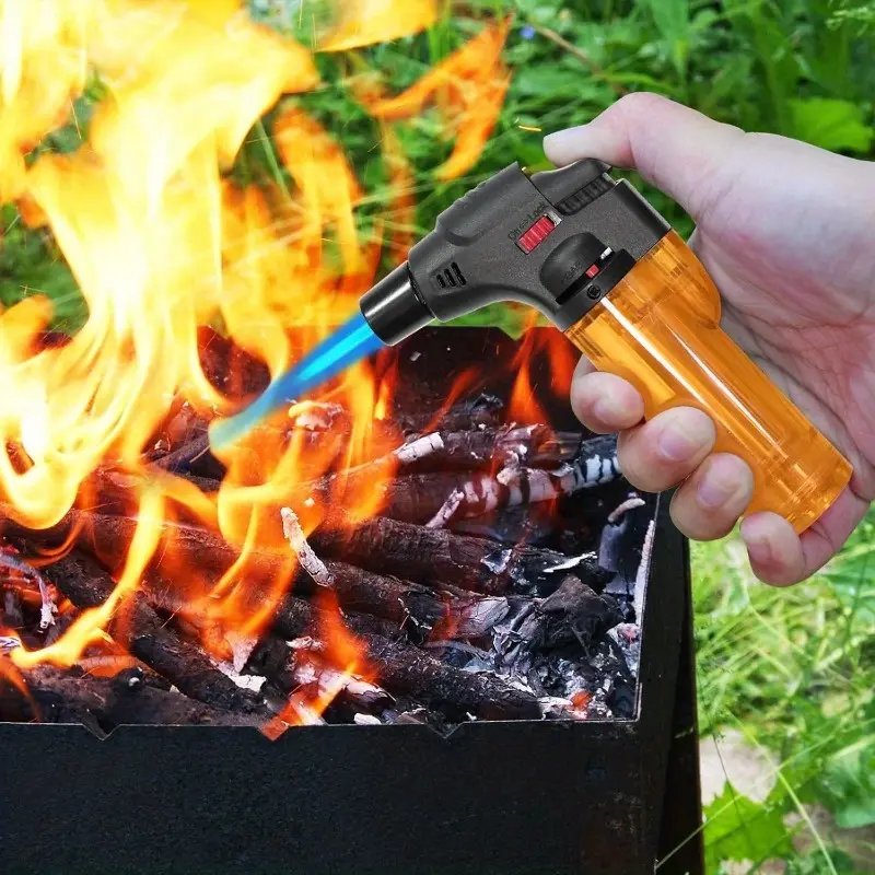 Butane gas lighter 360° metal outdoor windproof turbine torch jet lighter, butane torch, adjustable flame lighter, suitable for outdoor barbecue, cigar, kitchen baking, red flame (butane gas not included/you need to bring your own gas)