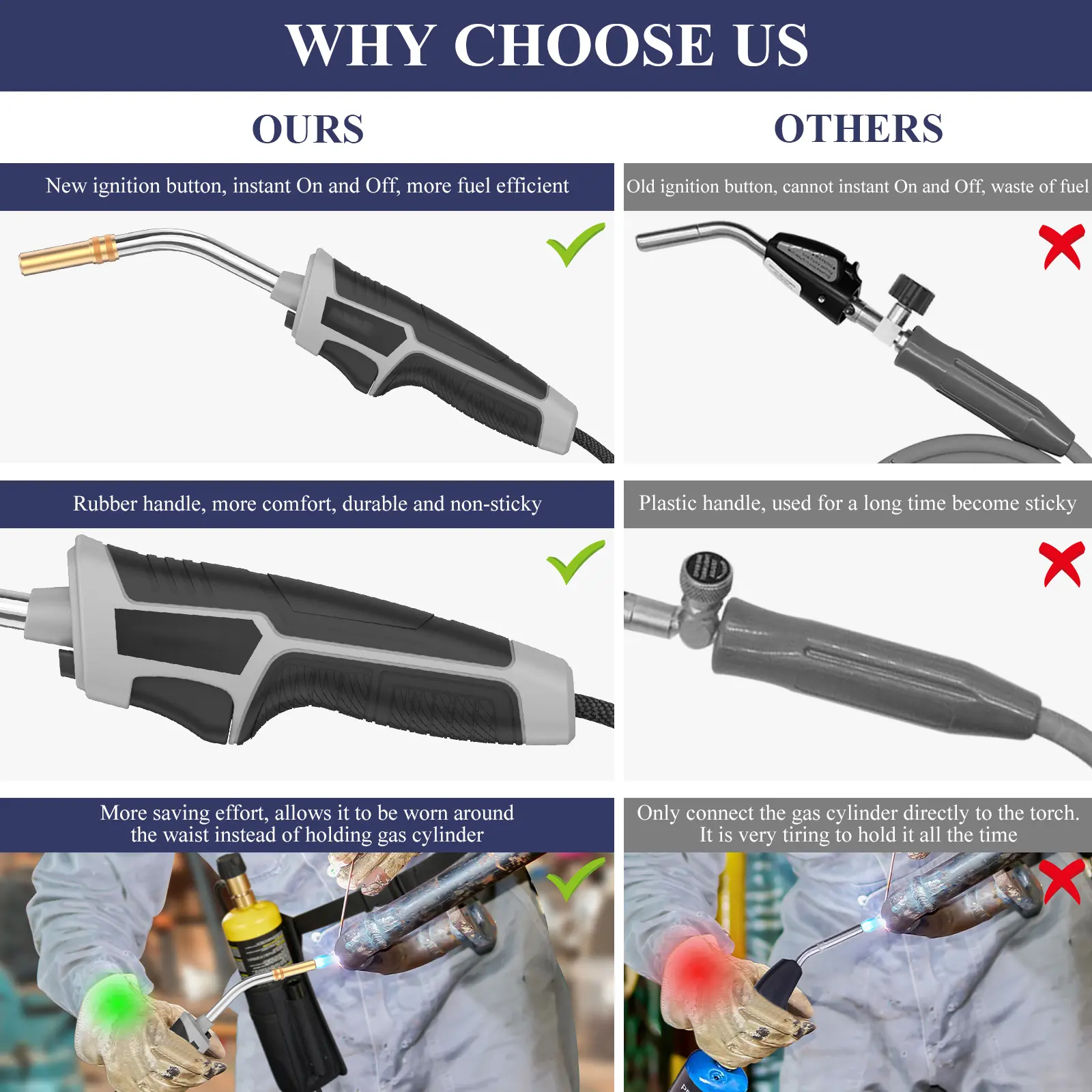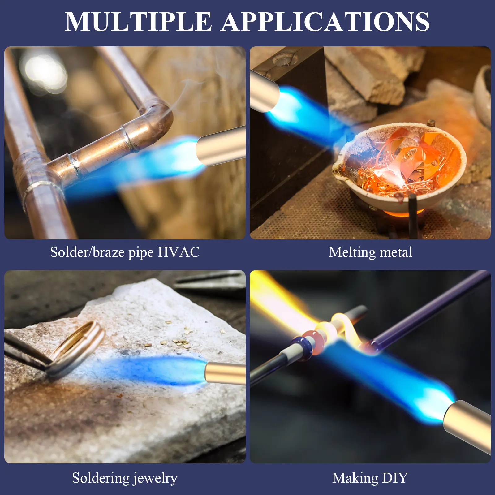 【Excellent Ignition and Flame Control】The welding torch has an excellent ignition mechanism to help you light the flame quickly and safely, and is perfectly compatible with propane, MAPP, MAPP PRO(fuel not included).