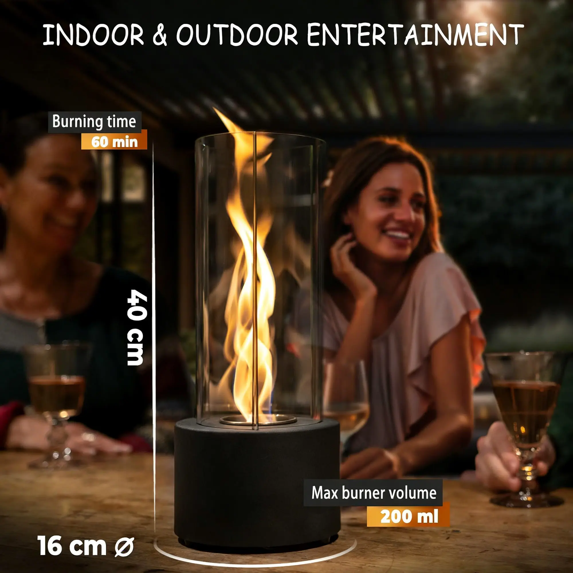 Tornado Tabletop Fire Pit [ 60-90 Mins ] with Adjustable Flame Ring, Tabletop Fireplace Indoor & Outdoor Gift for Balcony Home Decor, Portable Table Top Firepit for Parties, Clear Glass Fire Pit Modern