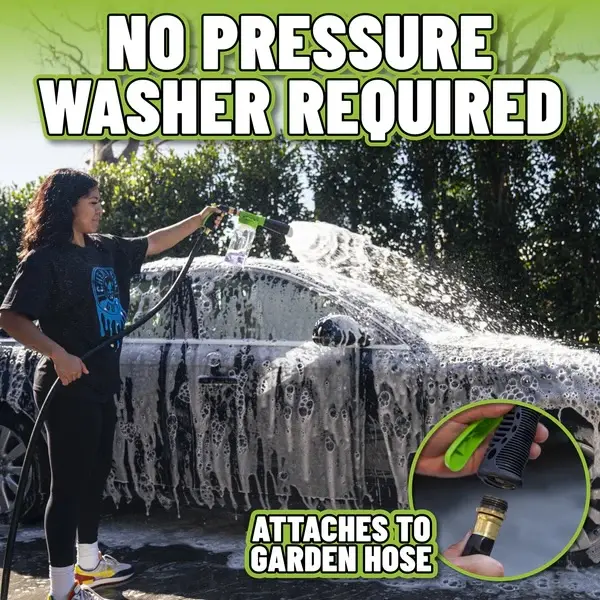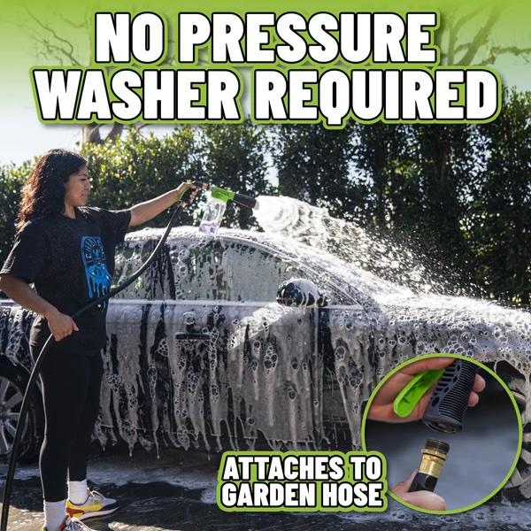 This foam blaster quickly covers your car with a great lather. It’s easy to scrub it out then and rinse it clean definitely recommend great purchase.
