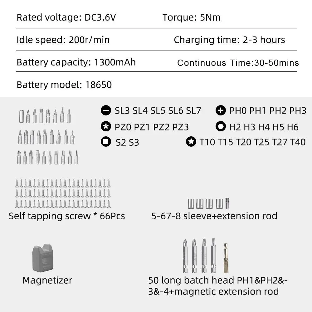 Torque Adjustable Electric Screwdriver, Cordless Power Screwdriver Set, USB Rechargeable Multifunctional Screwdriver with Light, Handheld Driver Tool KitFFSummitSupply7