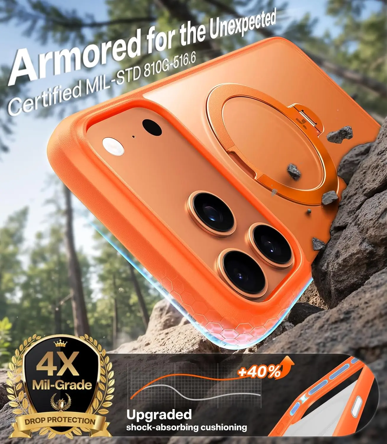 ·[Premium Craftsmanship | Built to Last] Made from a refined blend of hard polycarbonate and flexible TPU, this case compatible with iPhone Pro Max 17 is built to offer you the premium experience. It fits flawlessly and enhances usability with individually engineered volume buttons. It undergoes 6 years of verifying throughout the design and manufacturing process, popular since our first ostand generation. So not only does it look great but also withstands the test of time