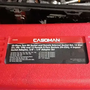 This CASOMAN 32-Piece Torx Bit Socket and Female External Socket Set is made from Heavy-duty Chrome-Vanadium steel alloy (50BV30) and S2 with a corrosion-resistant black phosphate finish, providing the durability for a hard use.