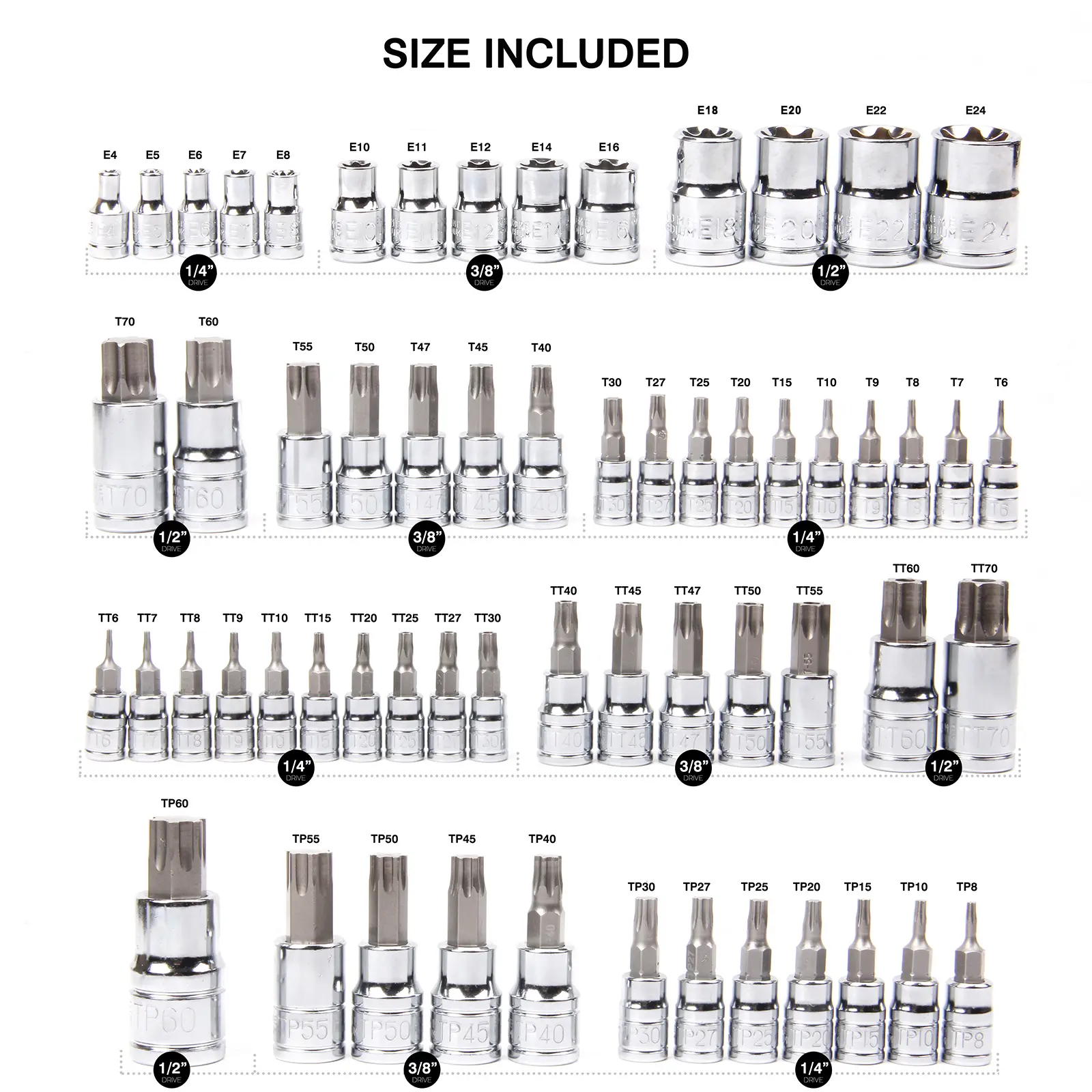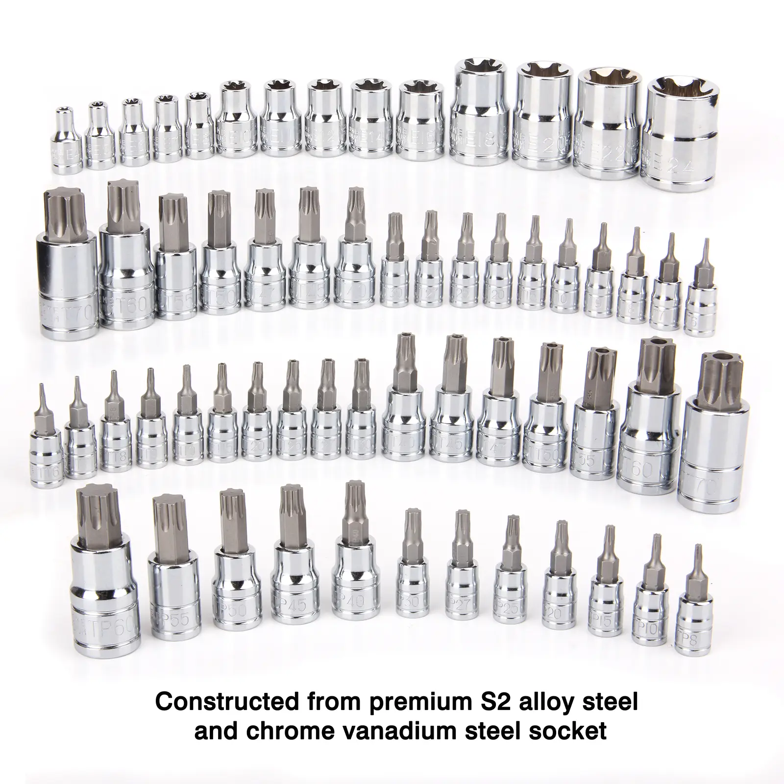 CASOMAN Master Torx Bit Socket and External Torx Socket Set,60-Piece Set, E4-E24, T6-T70,TT6-TT70,TP8-TP60
