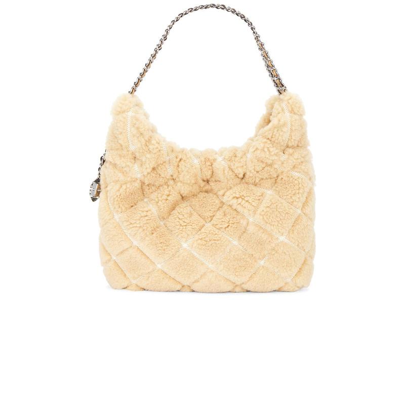 5. Tory Burch Fleming Shearling Mini Hobo Bag in Ivory