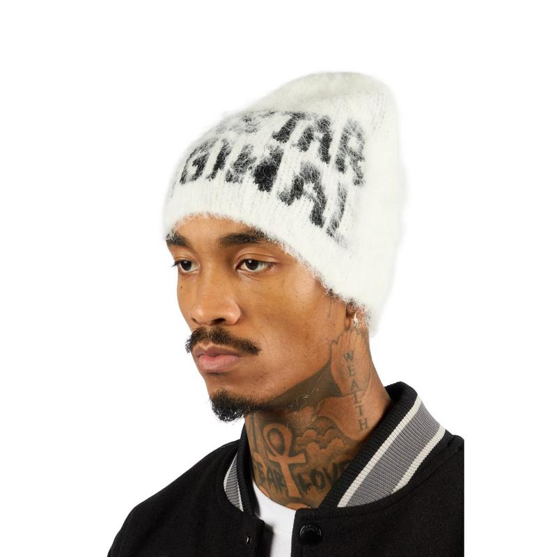 A versatile streetwear beanie for men in white. Designed with organic cotton and fuzzy knit Mohair fabric for a must-cope urban headwear style.