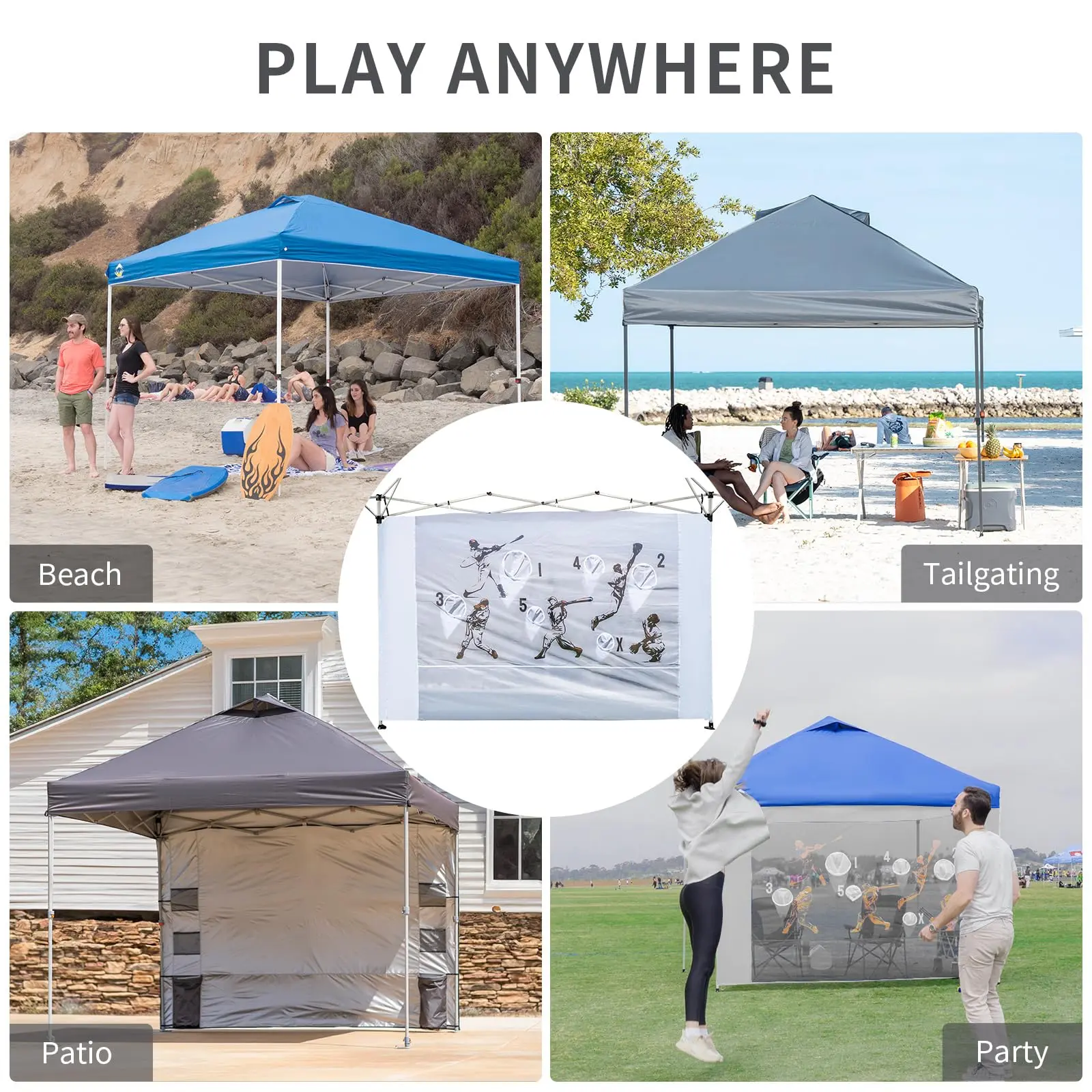 ·TAILGATING ESSENTIAL - Elevate your tailgating experience with our selection of bold, colorful sidewalls in white, blue, gray, black, and khaki. Offer dual benefits: the game netting acts as a mosquito netting, and the game sidewall provides shade and privacy. Opt for a set of four distinct nettings to customize your 10x10 canopy tent.