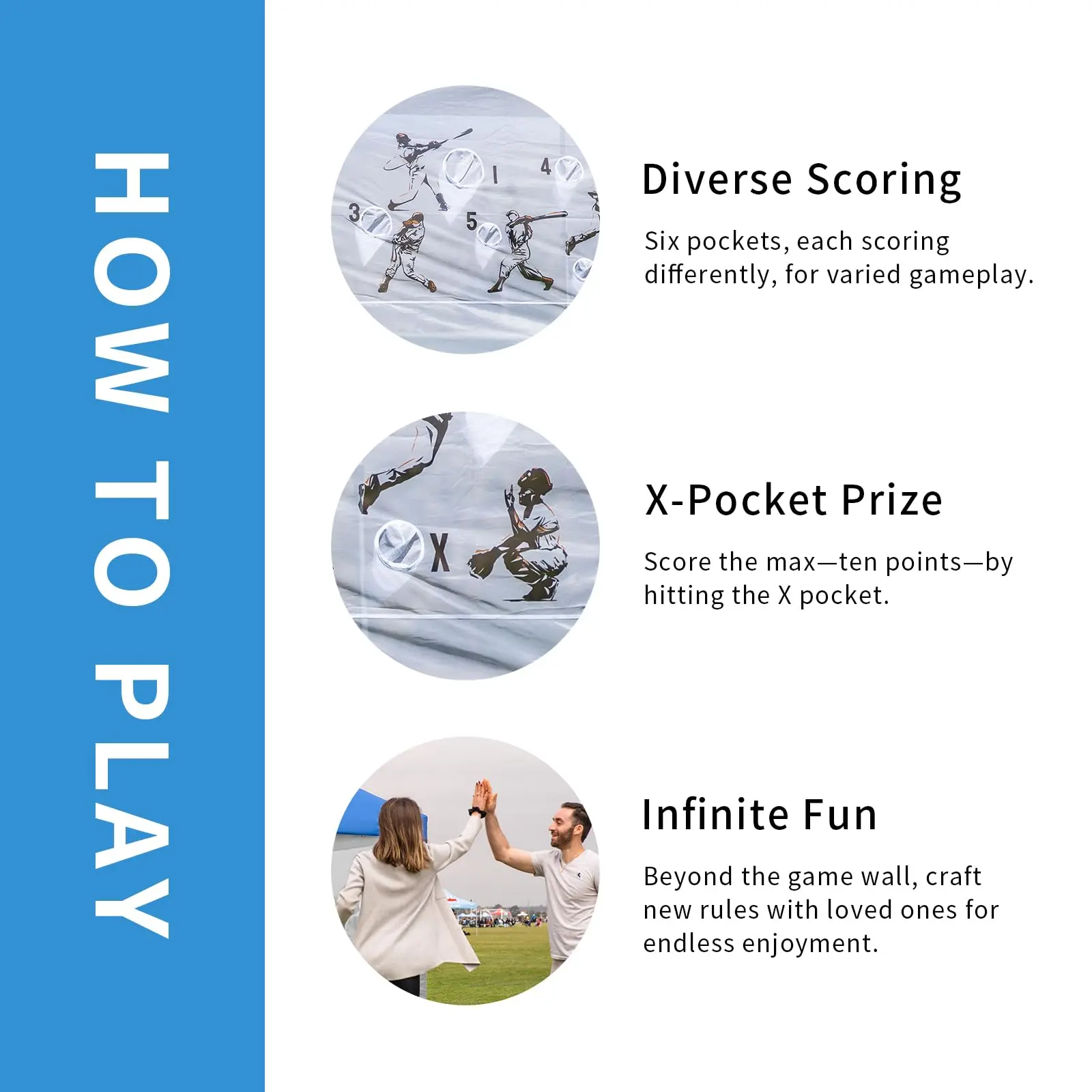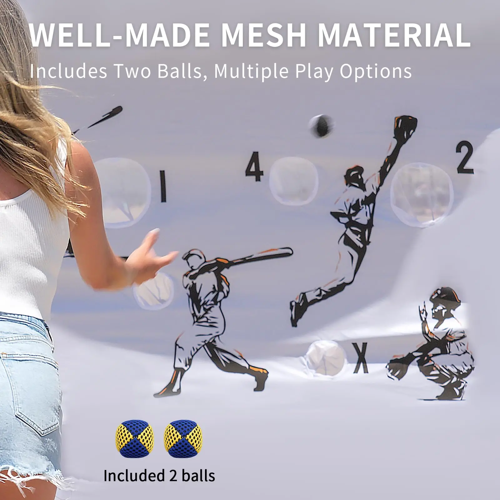 ·6 TARGETS & 2 BALLS - Designed with six pockets of varying sizes, which can be marked for different point values, this toss game netting offers a variety of play options for your backyard/beach/tailgating entertainment. You can set your own rules to enjoy gameplay with your children or have fun with your family.