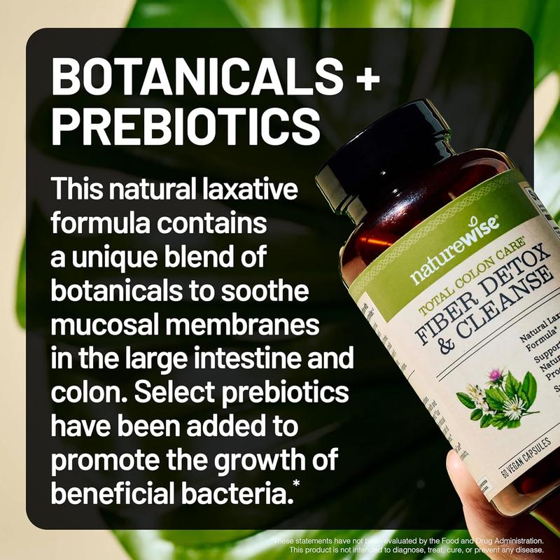 Ā·NATURAL LAXATIVE FORMULA: NatureWise Total Colon Care Fiber Cleanse is a holistic blend of herbs and enzymes formulated to help cleanse the colon and promote healthy digestion and regularity*