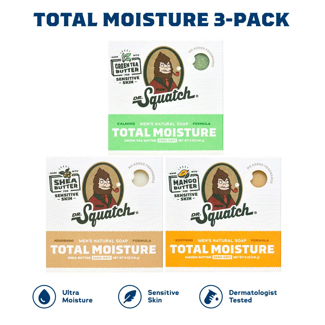 NEW Total Moisture soap for men with ultra sensitive skin. Lay the hammer down on dryness by getting in touch with your sensitive side. Experience cold process hydration like never before with NO ADDED FRAGRANCE.