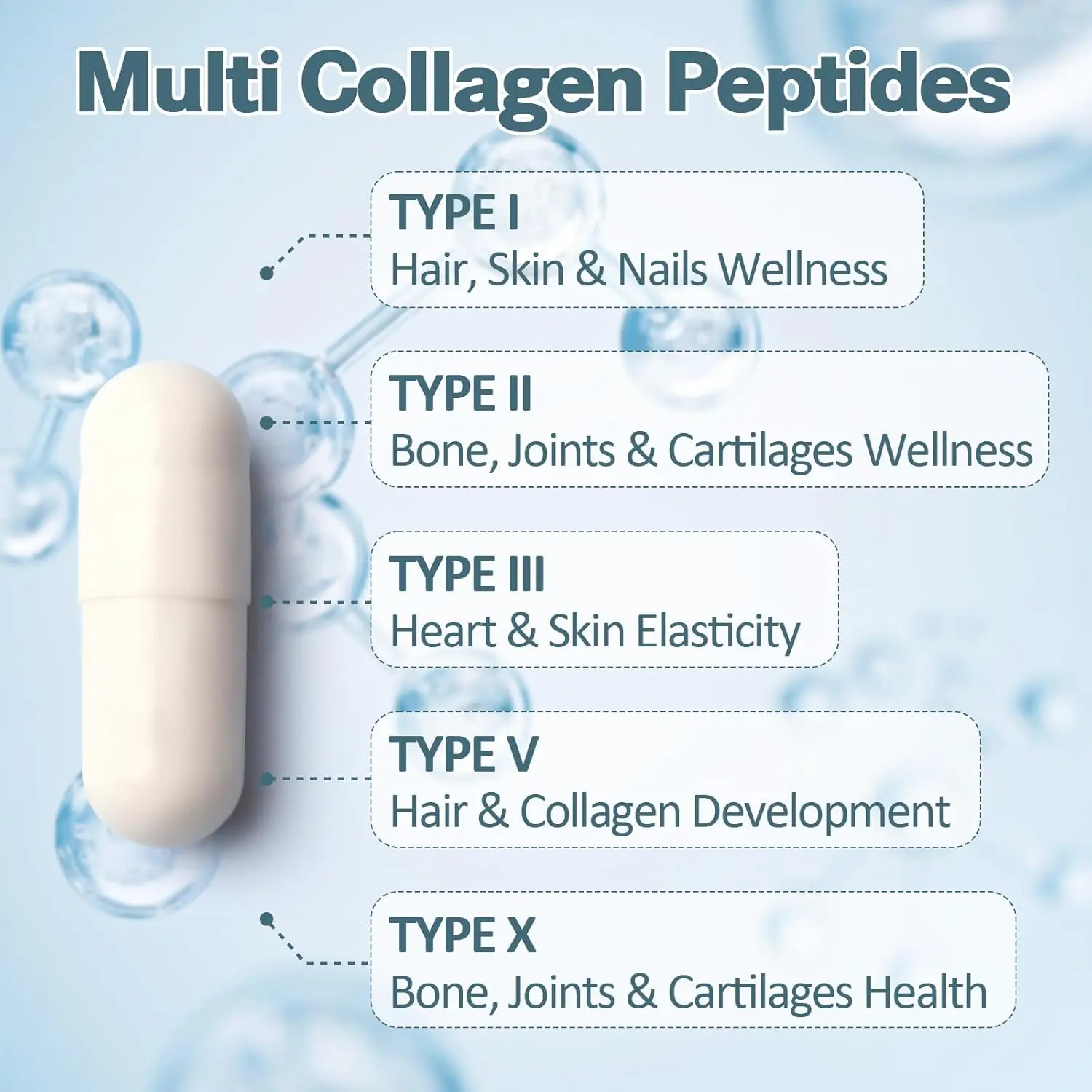·Multi Collagen Protein: Contains collagen type I, II, III, V, and X, providing a diverse range of nutrients.