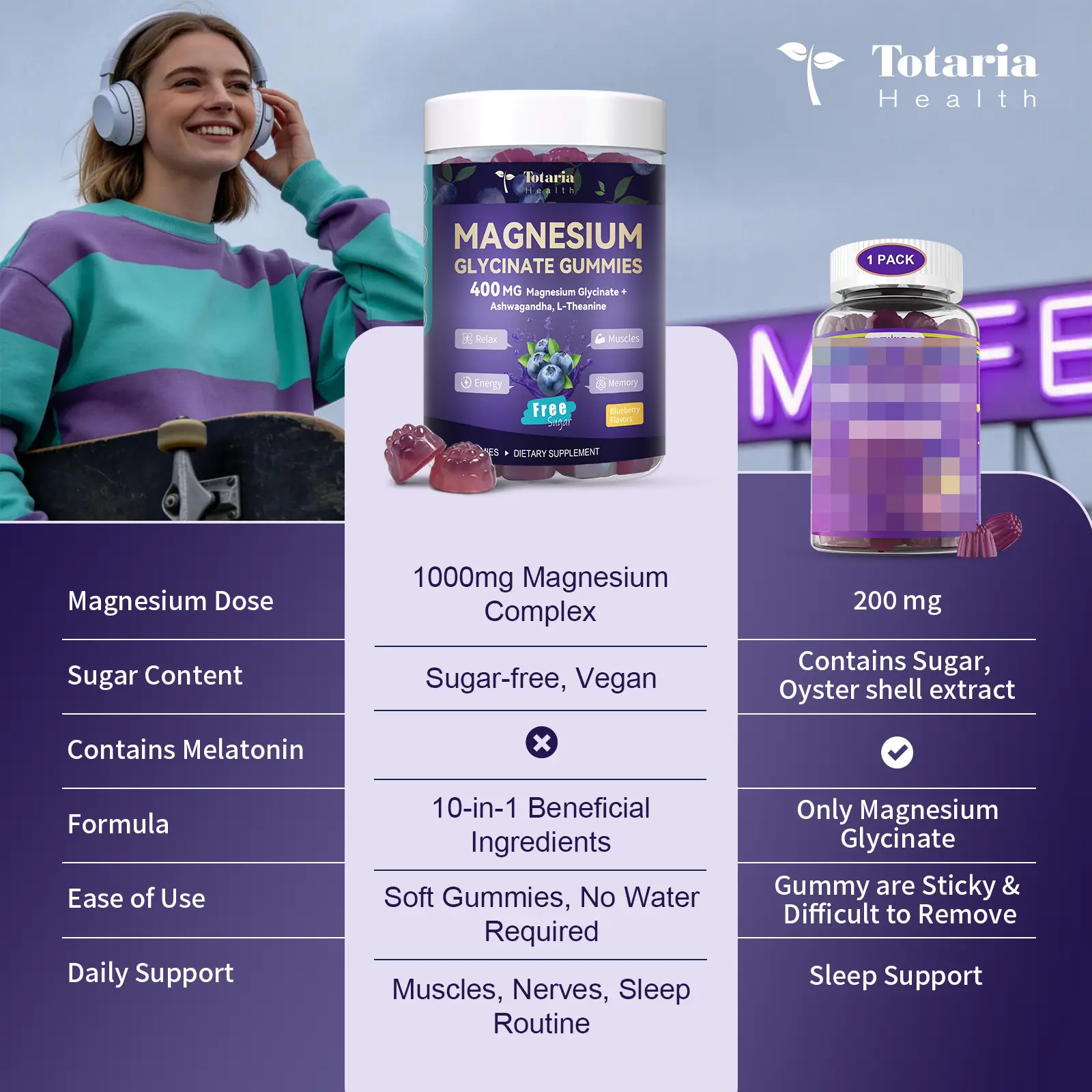 ·[Clean, Trusted Ingredients - No Melatonin]: Worried about hidden additives? Totaria gummies are 100% vegan, sugar-free, and non-GMO—made with pectin (not gelatin), natural blueberry flavor, and zero artificial sweeteners. We skip fillers, gluten, and allergens, so you get pure, effective support you can feel good about (backed by strict quality testing).