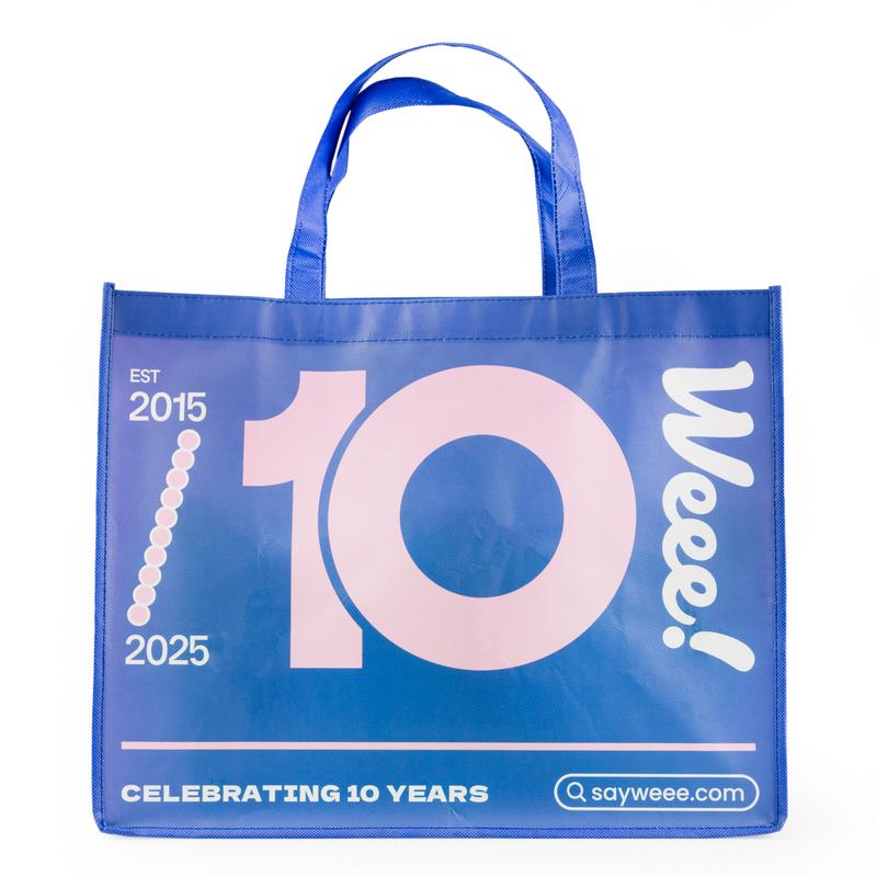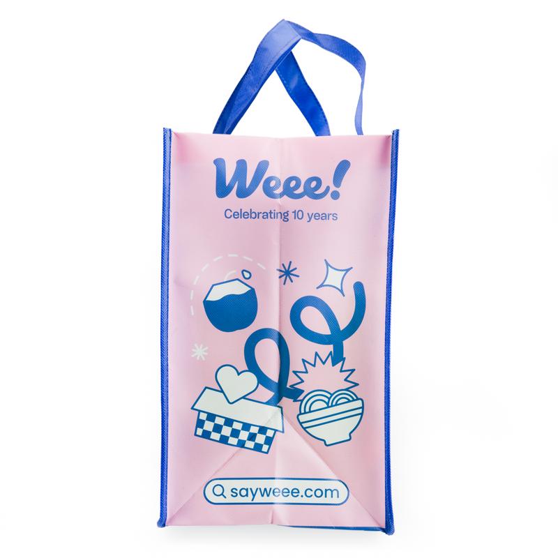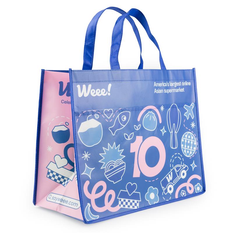 Was hoping for the blue bag, but received the red bag, which is also cute, but just know that design selection is random. The bag size is approx. 15½ x 12½ x 7½. It has pockets on the outside which is a great bonus! Overall a good tote, because there’s not such thing as having too many tote bags!