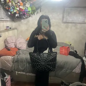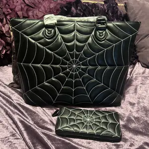 I finally bought it!! The Black/Black Spiderweb Tote from @Foxblood Shop purchased through @Die With Your Boots On on TikTok shop I am soooo obsessed can’t wait to use it Monday. The one linked is the black and white one  because TikTok shop wouldn’t let me link this one into my showcase #babeswhowearblack #smallbusiness #womenownedbusiness #salemmassachusetts #fyp